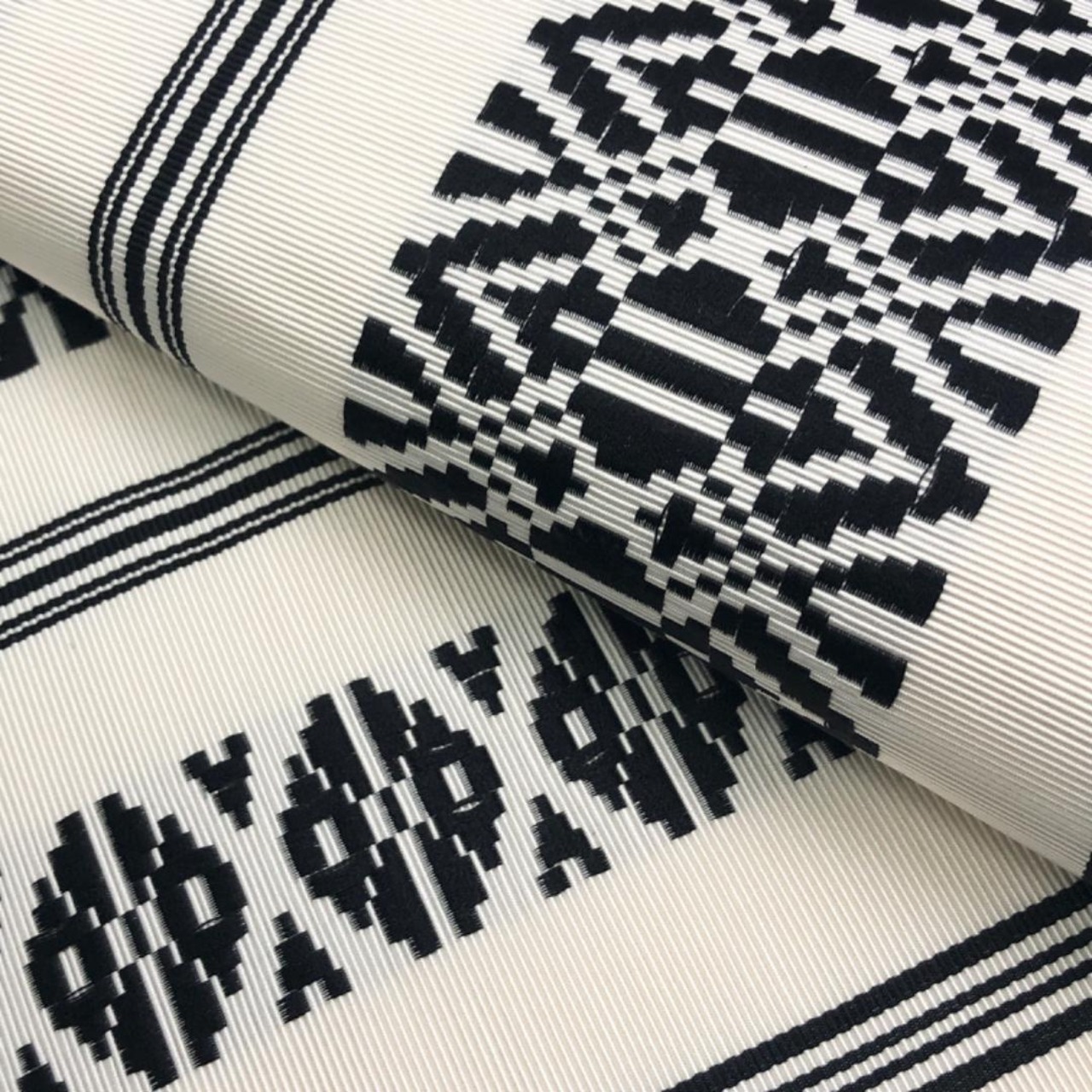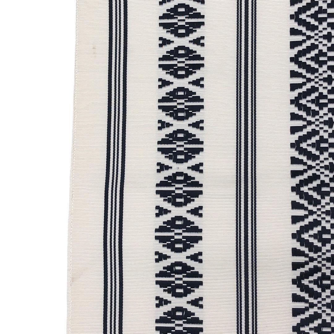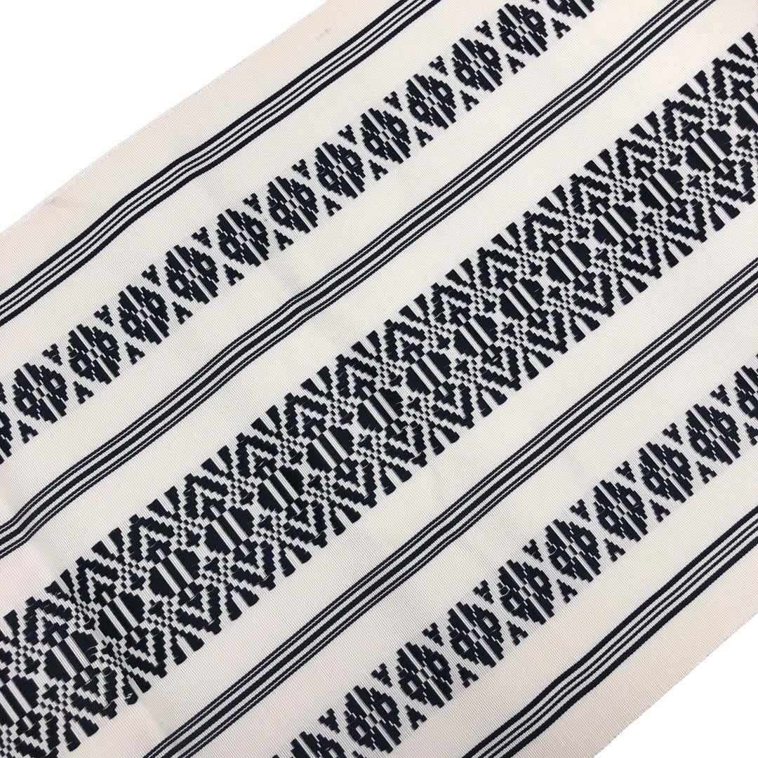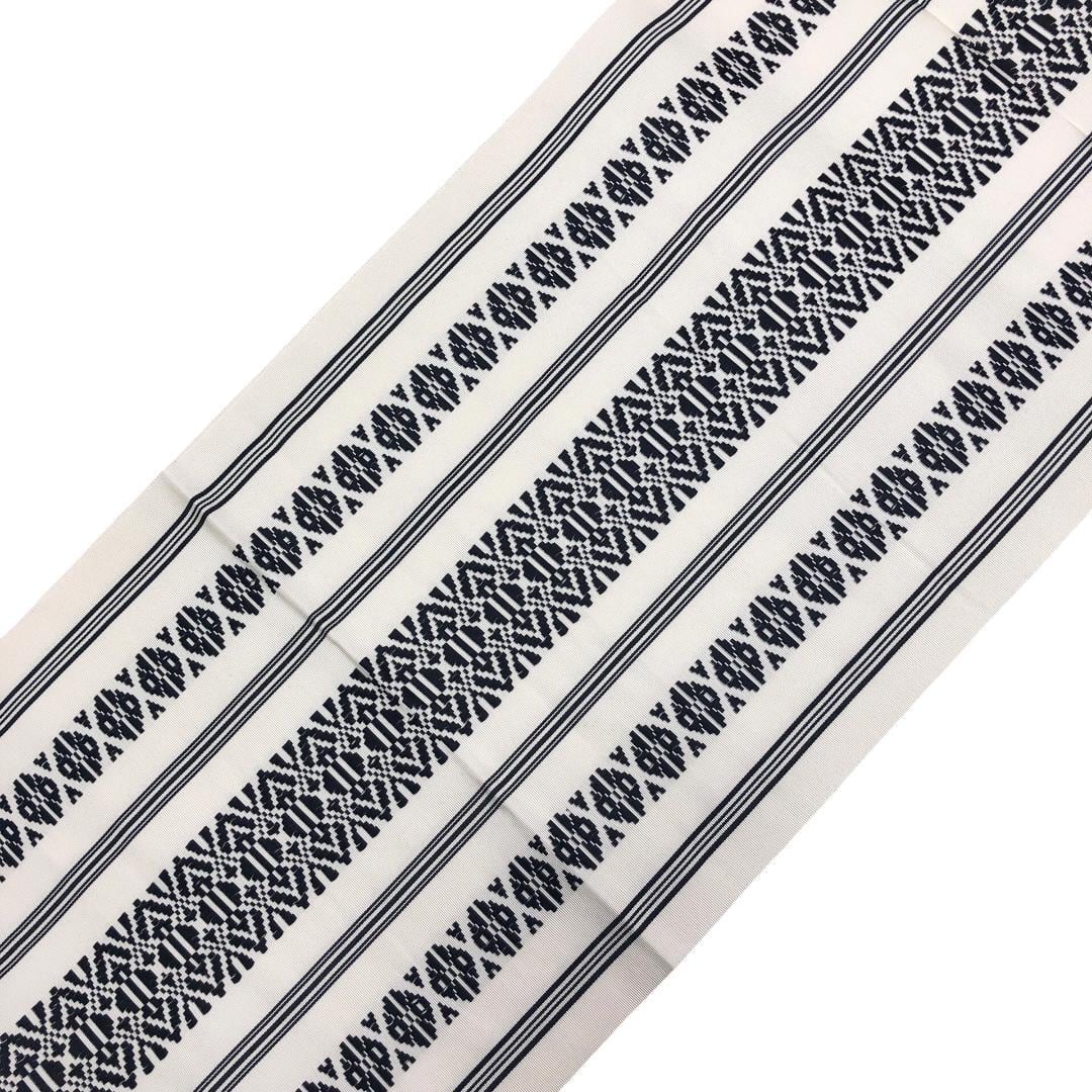 乳白色のお色味に献上柄の柄裄がデザインされた気持ち良い絹鳴りのする素敵なお品でございます。