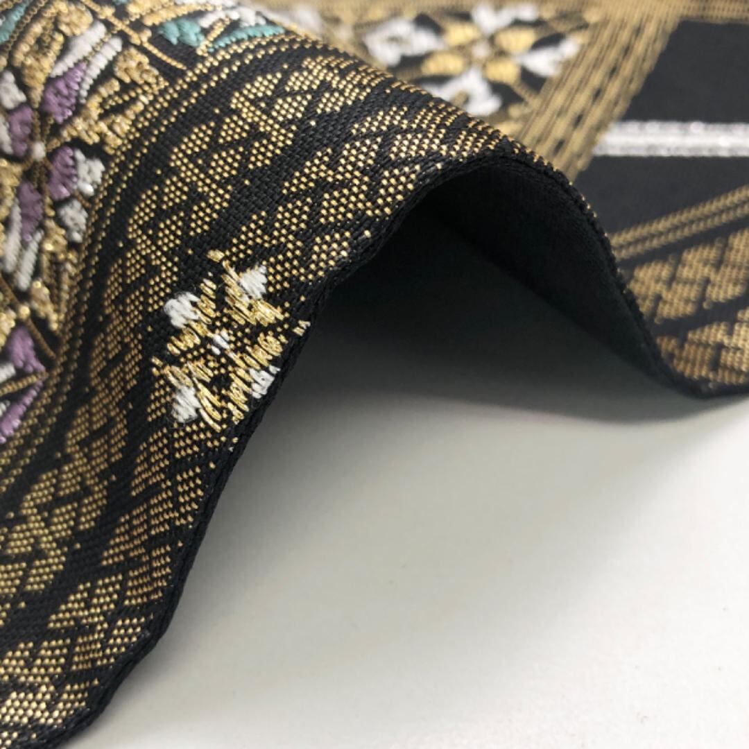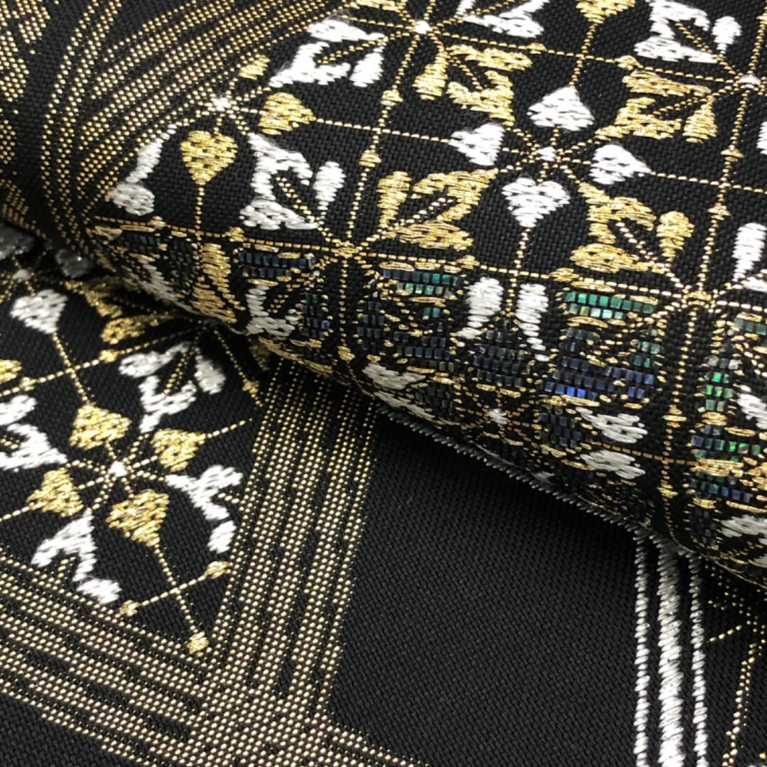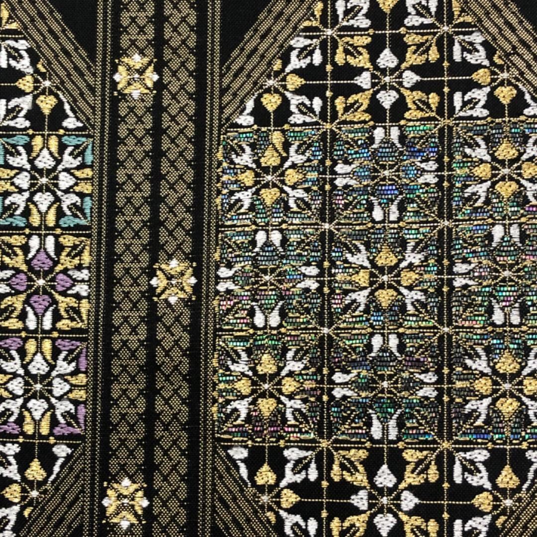 黒色のお色味にステンドグラスのような煌びやかで美しいモダンな雰囲気の織模様がデザインされた素敵なお品でございます。