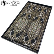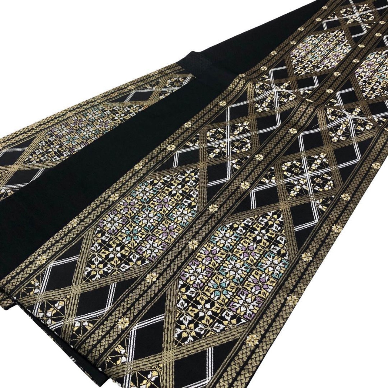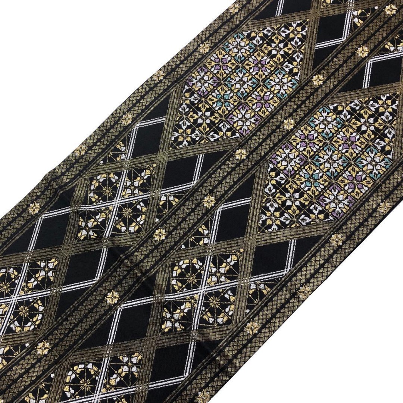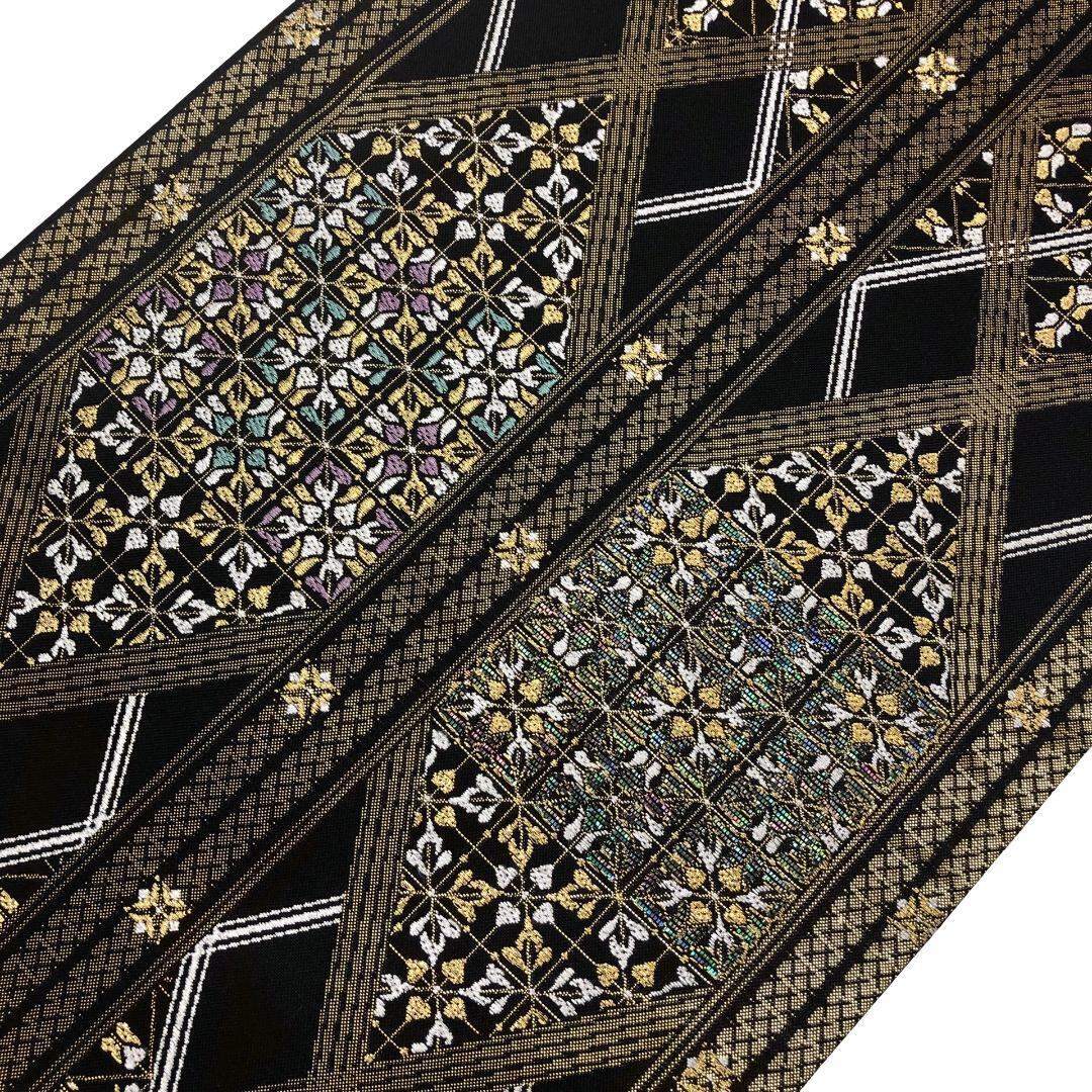 黒色のお色味にステンドグラスのような煌びやかで美しいモダンな雰囲気の織模様がデザインされた素敵なお品でございます。