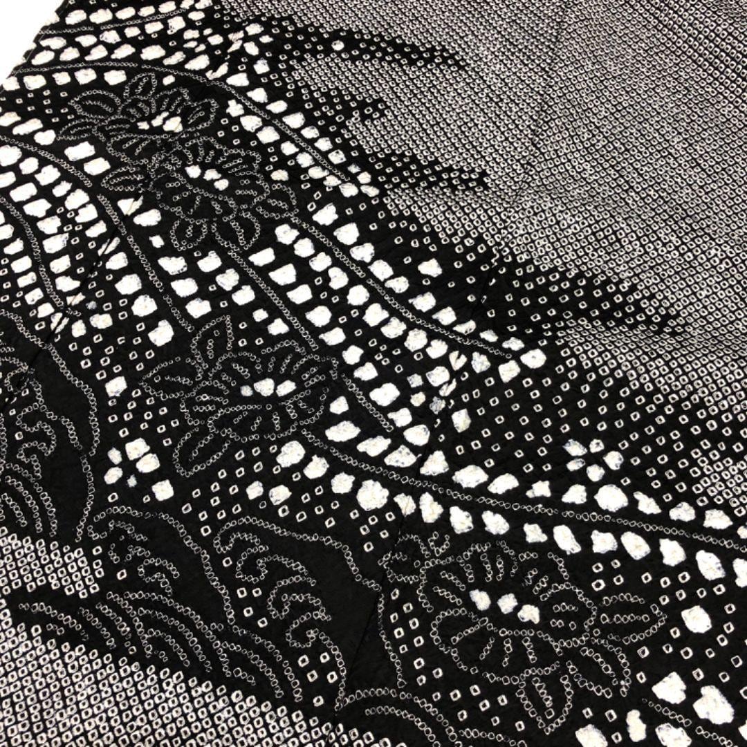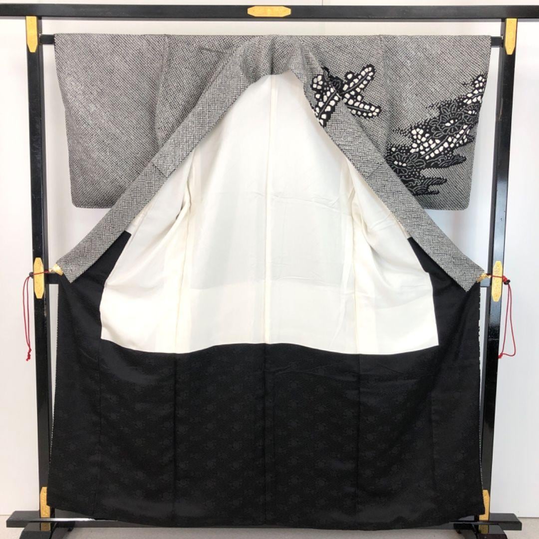 訪問着 総絞り 花柄模様 青海波 波模様 モノトーン しつけ糸 K-5355 着物 きもの kimono 和服 和装 中古 リサイクル着物 【送料無料】