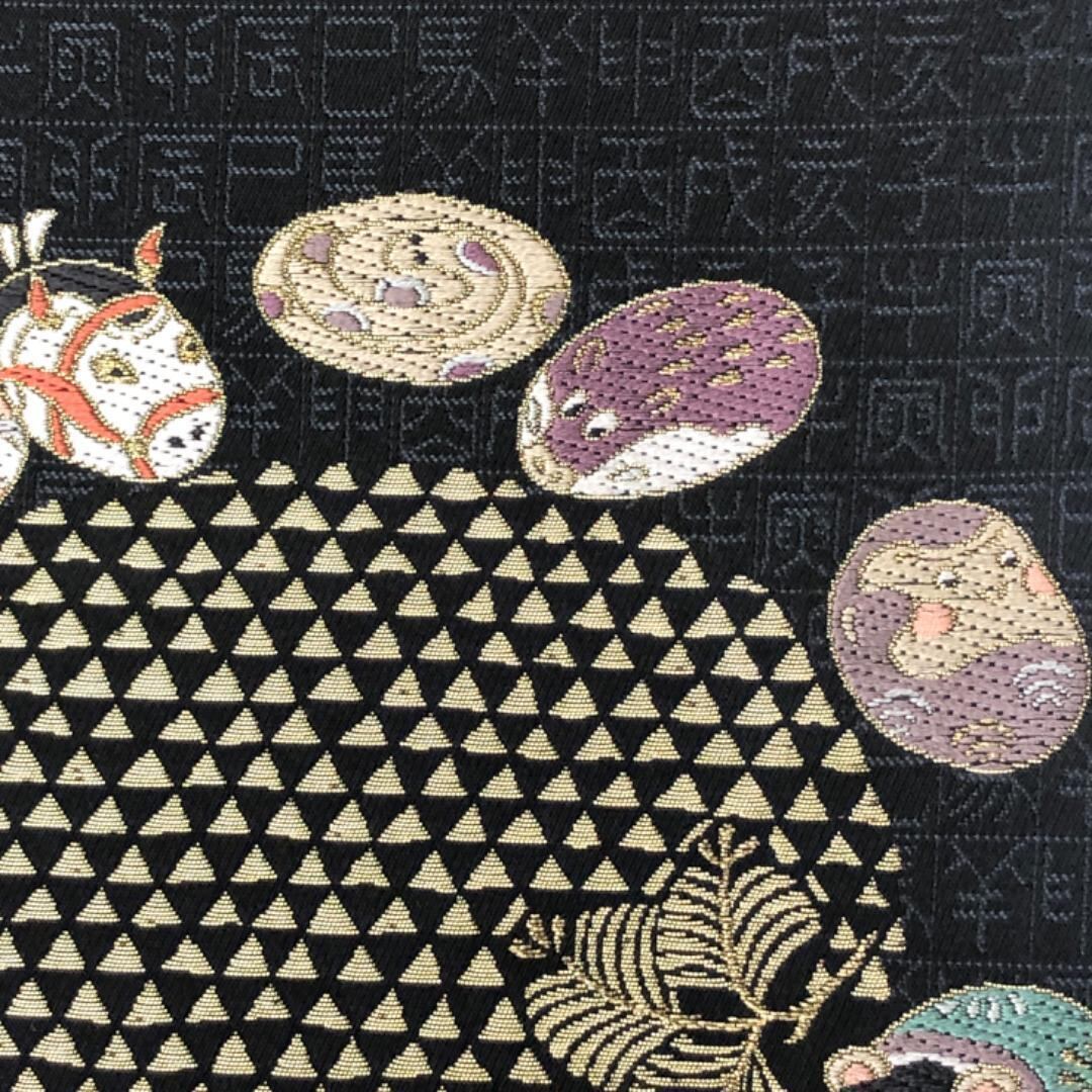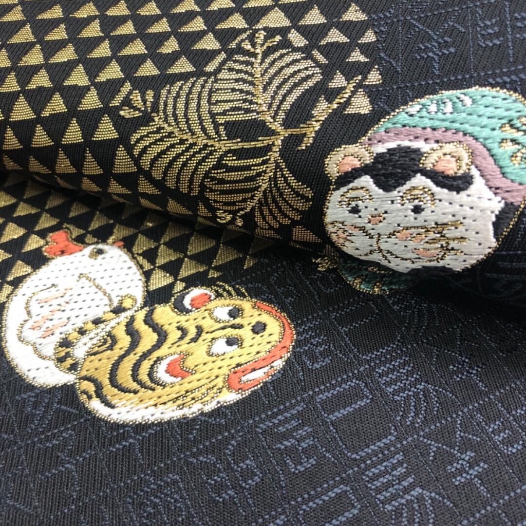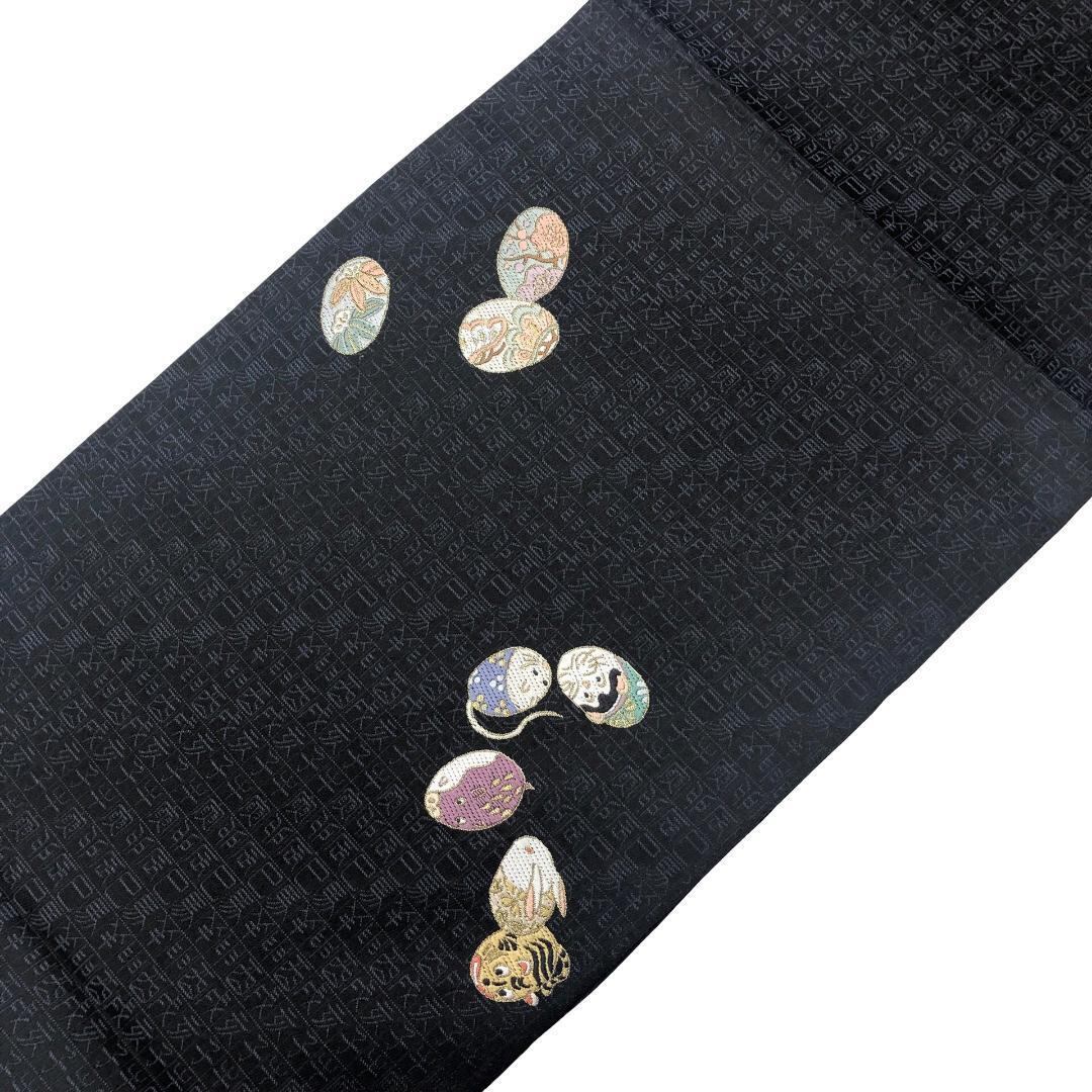 京袋帯 可愛い干支柄 黒色 金糸 O-5524 着物 きもの kimono 和服 和装 中古 リサイクル着物 【送料無料】
