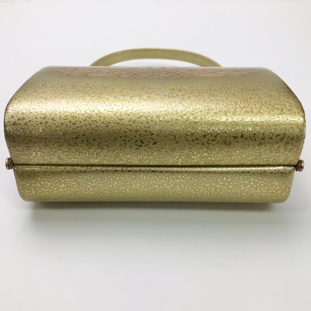 真鍮色のお色味の煌びやかな色彩に華模様がデザインされたフォーマルなお品でございます。