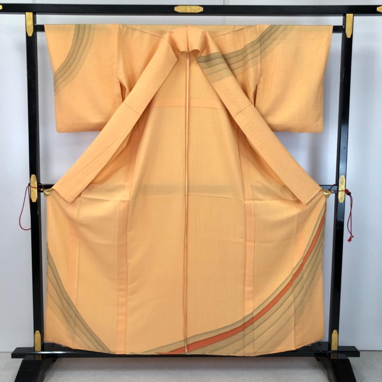 大和柿色ベースのお色味に曲線模様がデザインされた素敵なお品でございます。