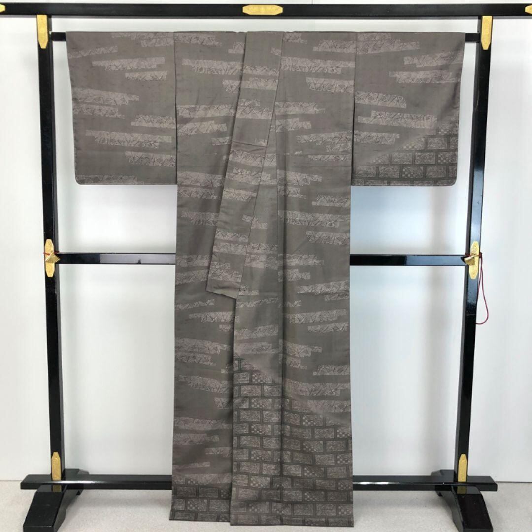 付下げ 川村久太郎 四角に草模様 京極生壁色 トールサイズ K-5357 着物 きもの kimono 和服 和装 中古 リサイクル着物 【送料無料】