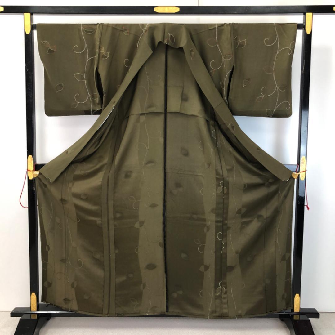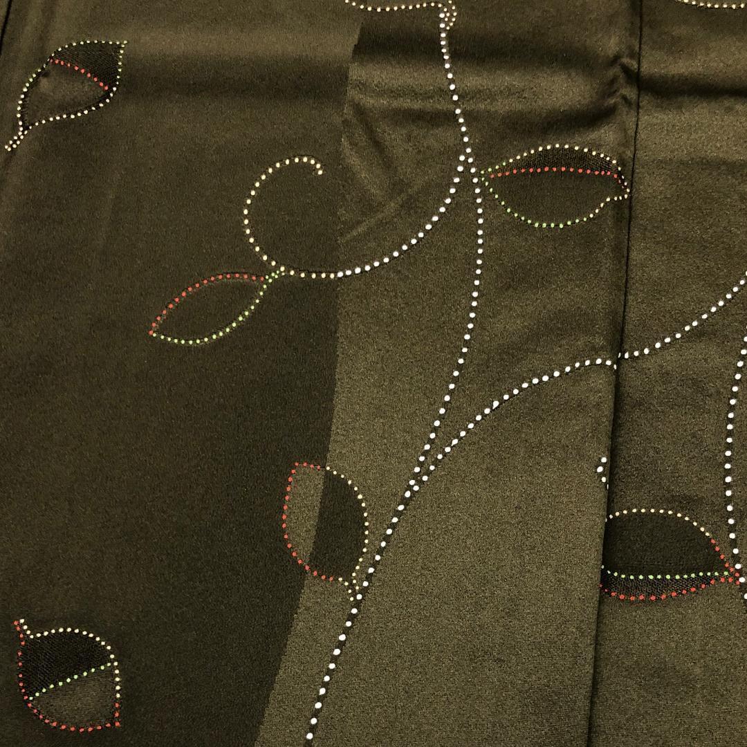 柳煤竹茶色ベースの落ち着いたお色味に縦柄唐草模様がデザインされた雰囲気の良い素敵なお品でございます。