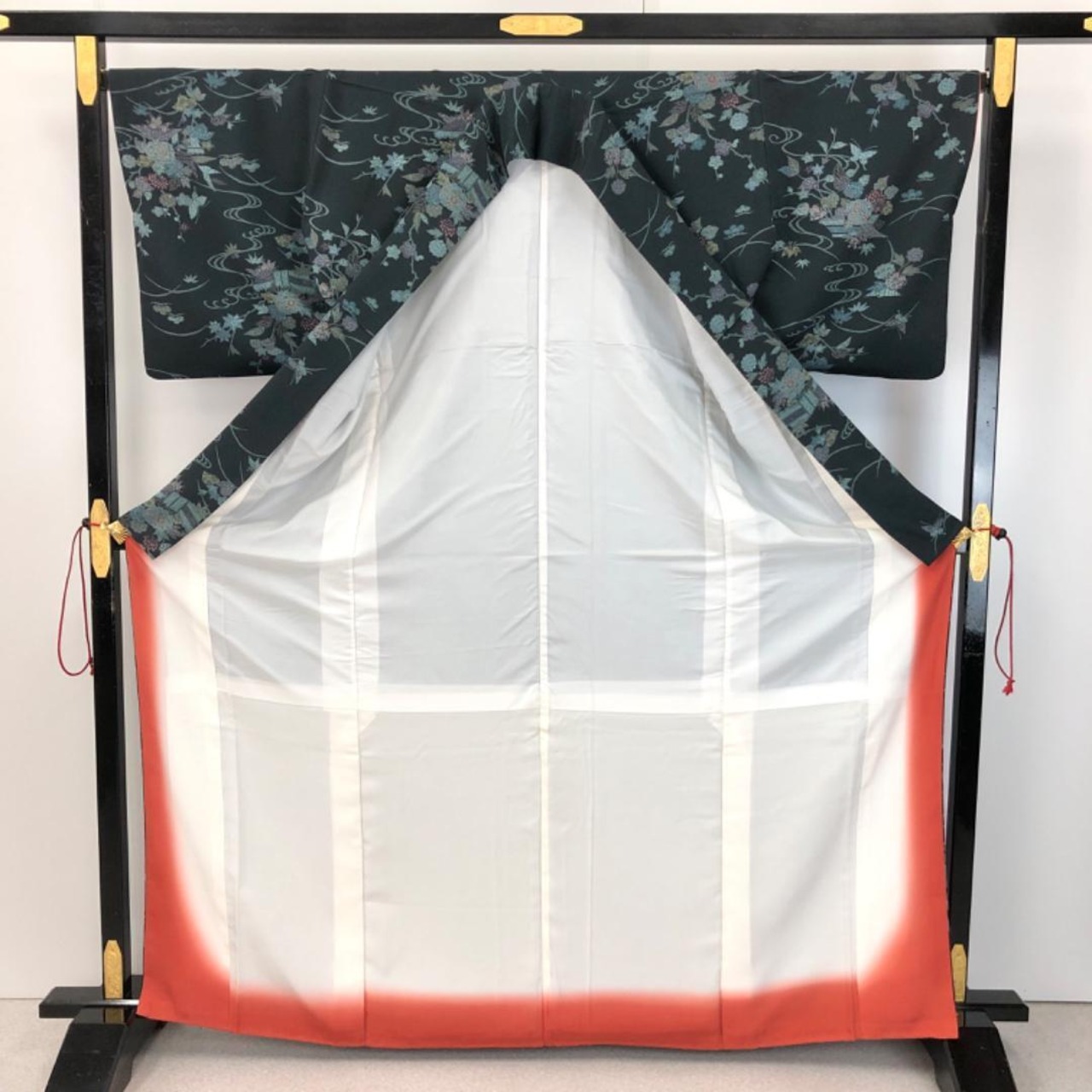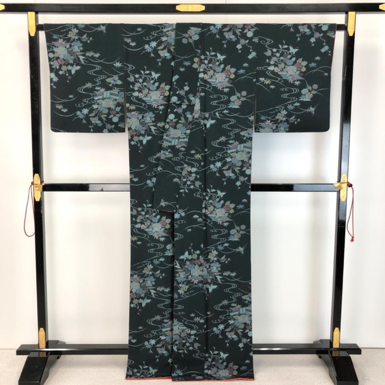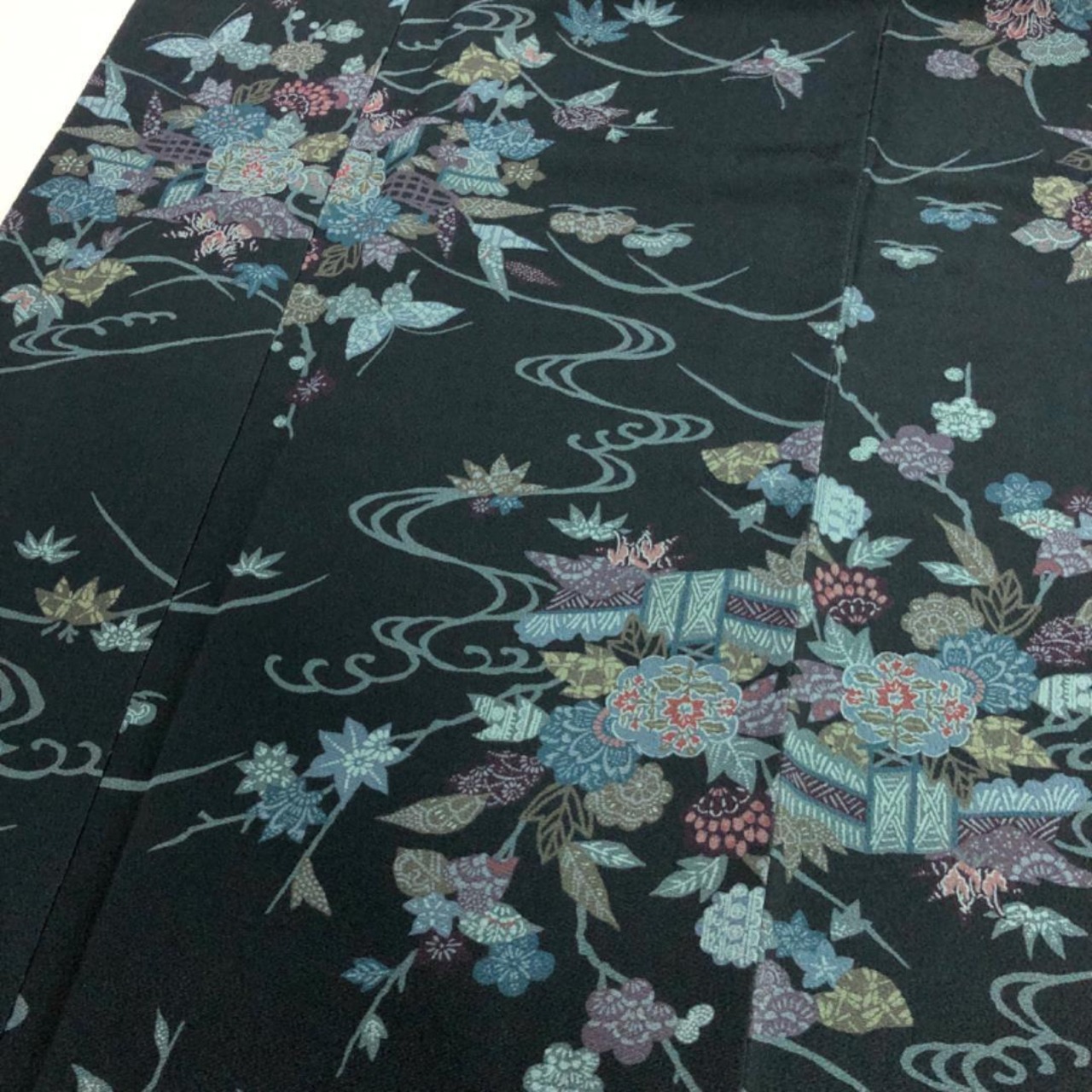 重要無形文化財伊勢型紙技術伝承者、草木染のつじみ色の落ち着きのあるお色味の古ちりめんに伊勢型の雰囲気の良い花草模様がデザインされた素敵な柄裄のお品でございます。