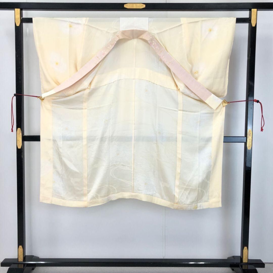長襦袢 単衣 絞り 組紐 牙黄色 刺繍半衿付 J-336 着物 きもの kimono 和服 和装 中古 リサイクル着物 【送料無料】
