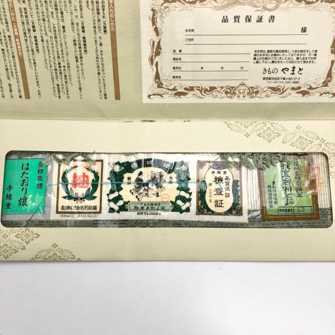結城紬 奥順 証紙付 80亀甲 菱形 花模様 利休色 しつけ糸 K-5399 着物 きもの kimono 和服 和装 中古 リサイクル着物 【送料無料】