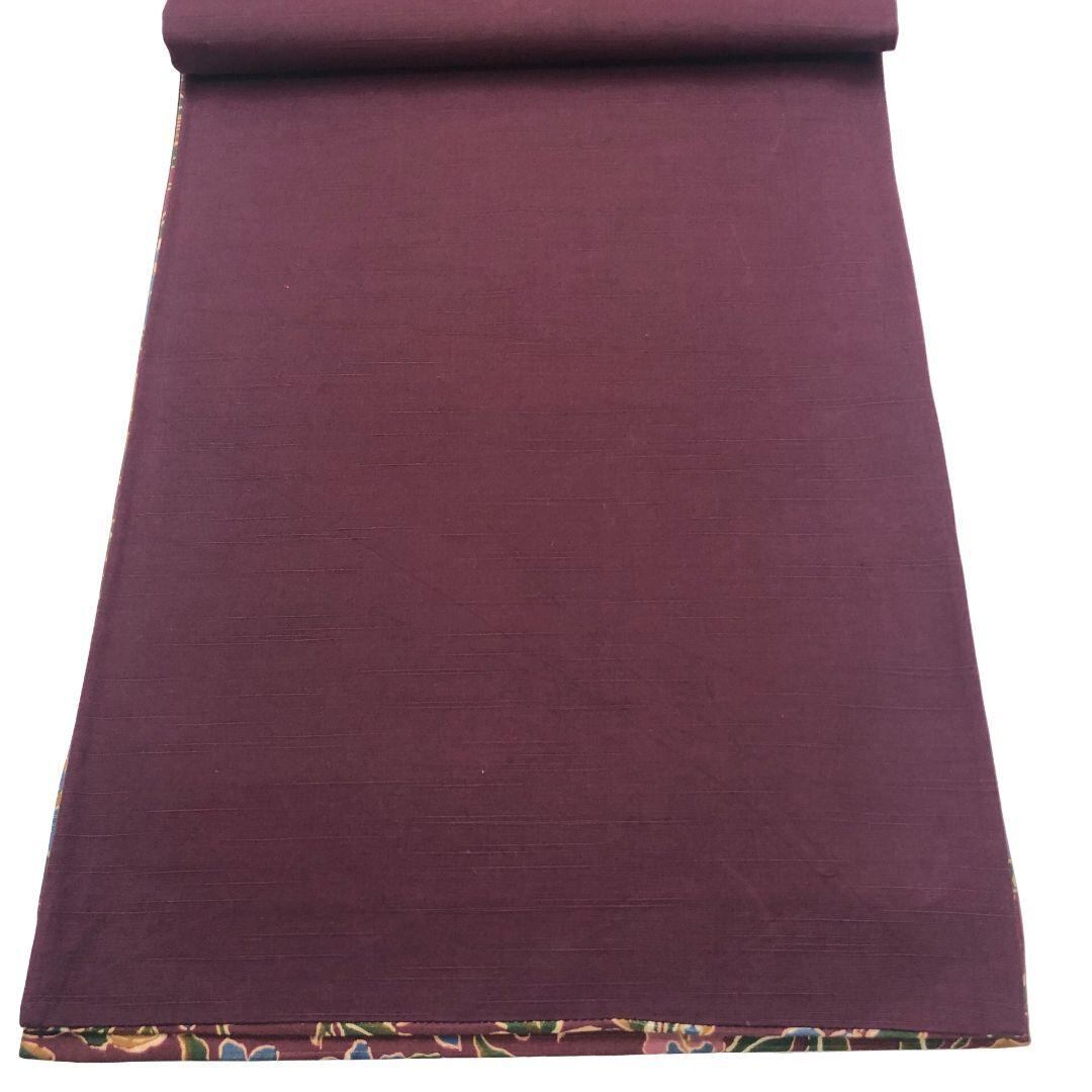 京袋帯 紬 型染 花唐草模様 暗紅色 O-5530 着物 きもの kimono 和服 和装 中古 リサイクル着物 【送料無料】