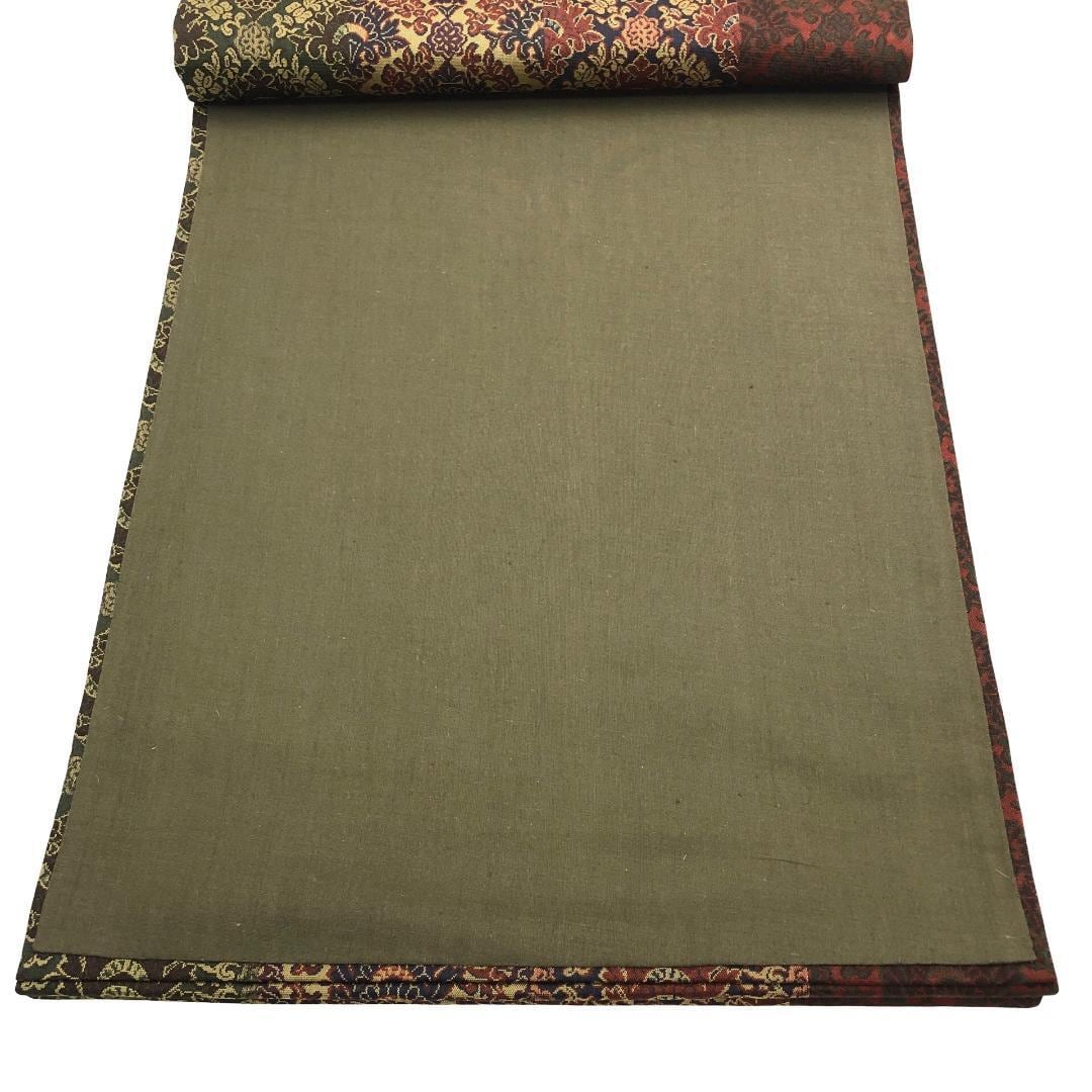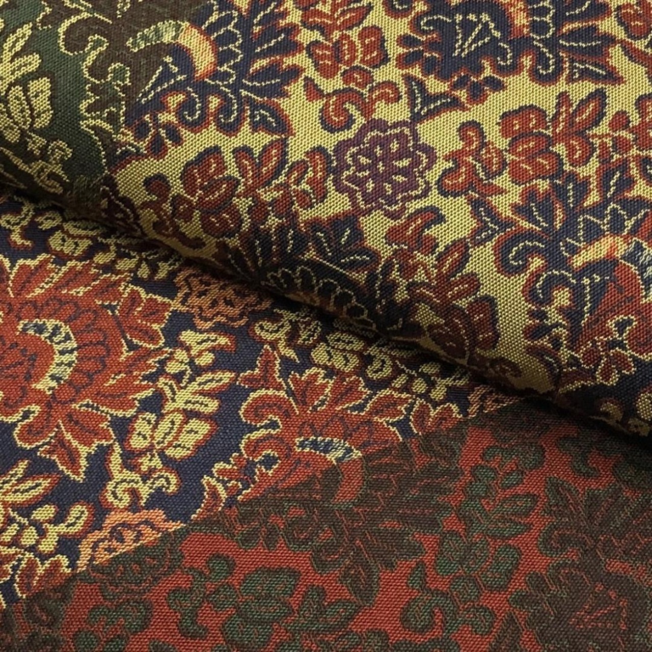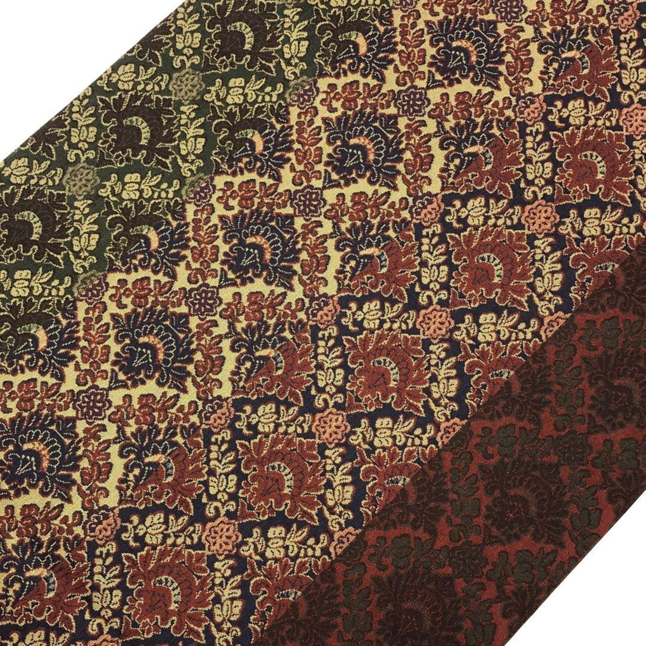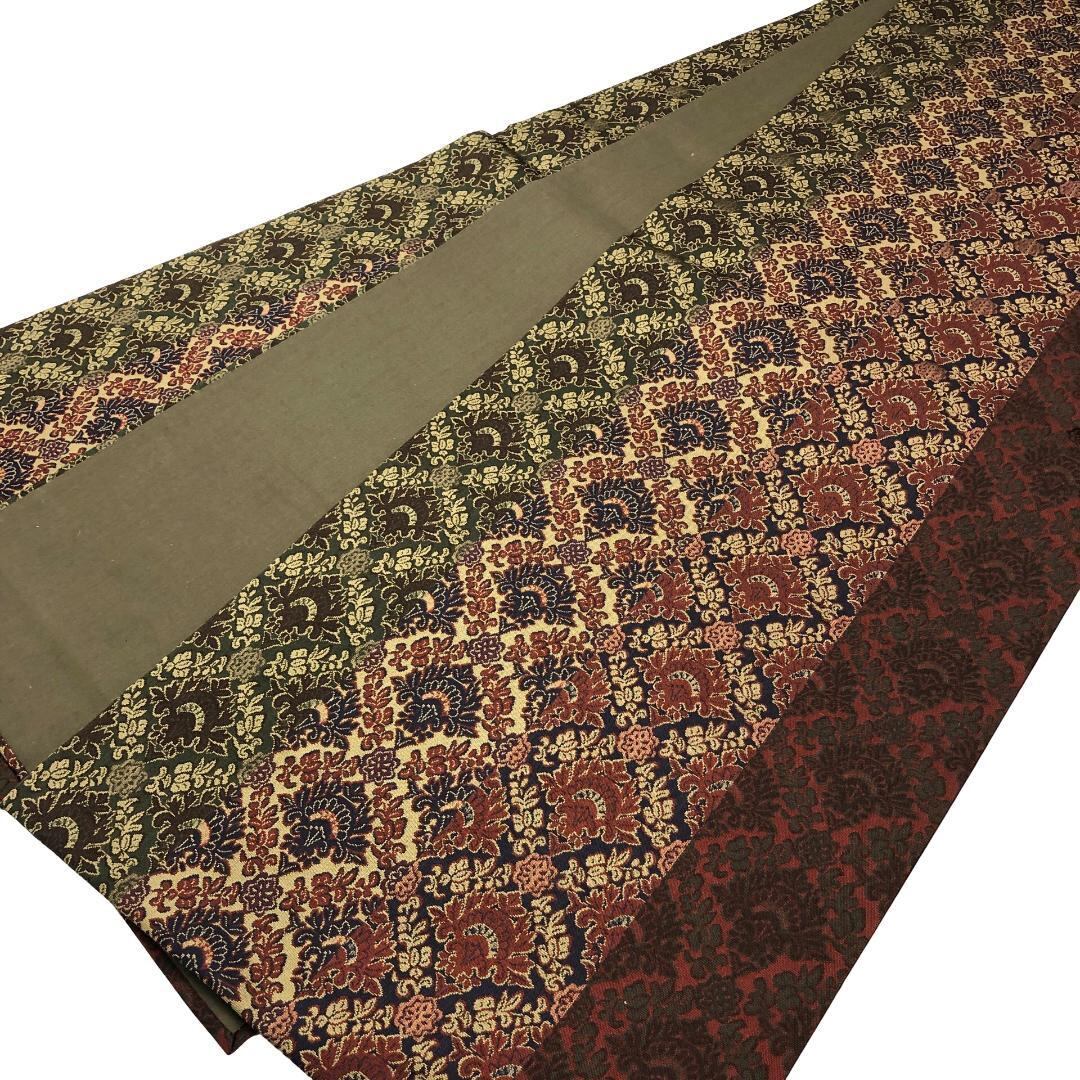 落ち着いた雰囲気のお色味に斜め格子に華柄模様の柄裄がデザインされた素敵なお品でございます。