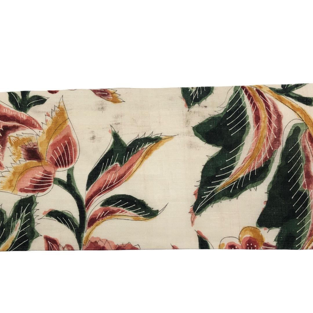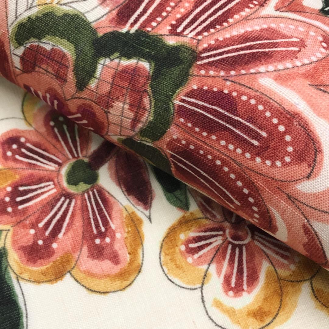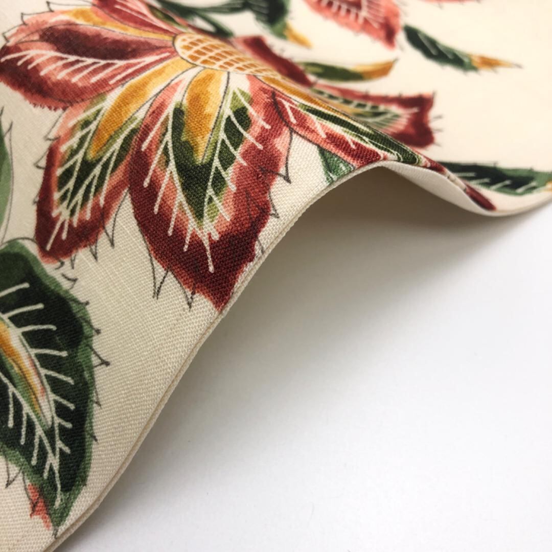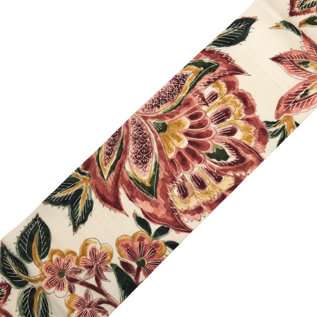 乳白色のお色味に色鮮やかな花模様の染柄がデザインされた素敵なお品でございます。