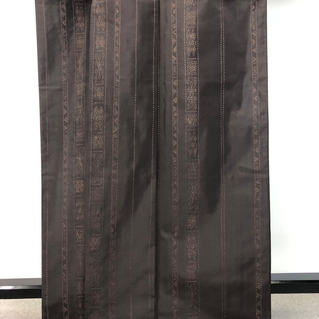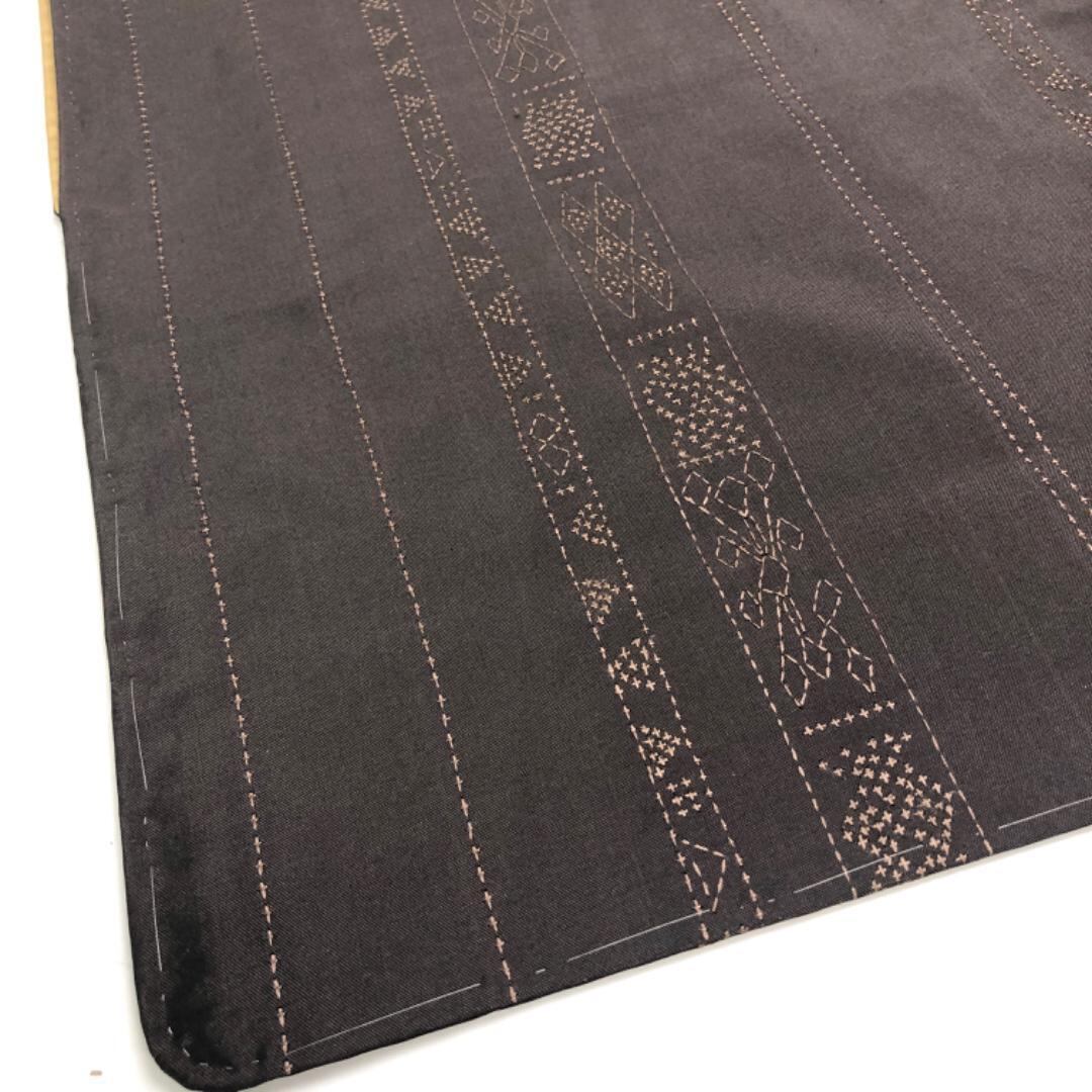 消炭色の落ち着きのあるお色味に総刺子の縦柄抽象模様がデザインされた雰囲気の良い素敵な柄裄のお品でございます。