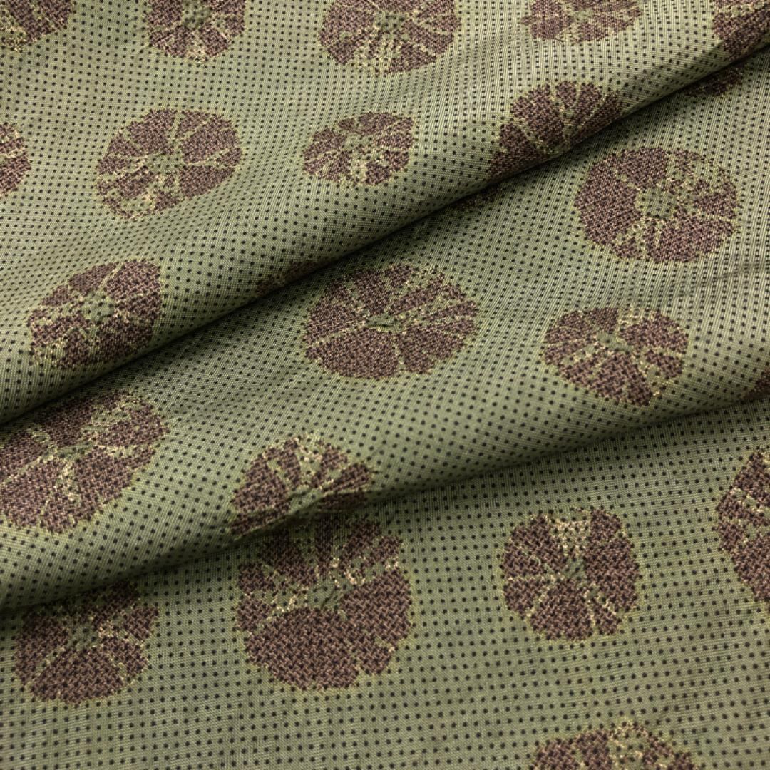 根岸色の落ち着いたお色味、雰囲気の良い絞り柄がデザインされた素敵な柄裄のお品でございます。