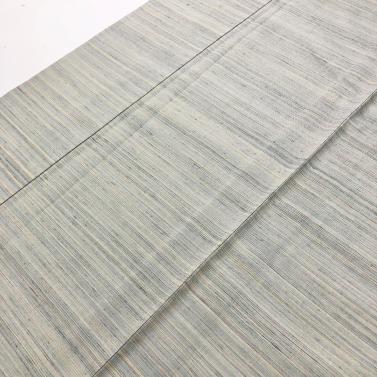 紅百彩と題された青磁色の上品なお色味に美しい織模様がデザインされた素敵な紅花染のお品でございます。