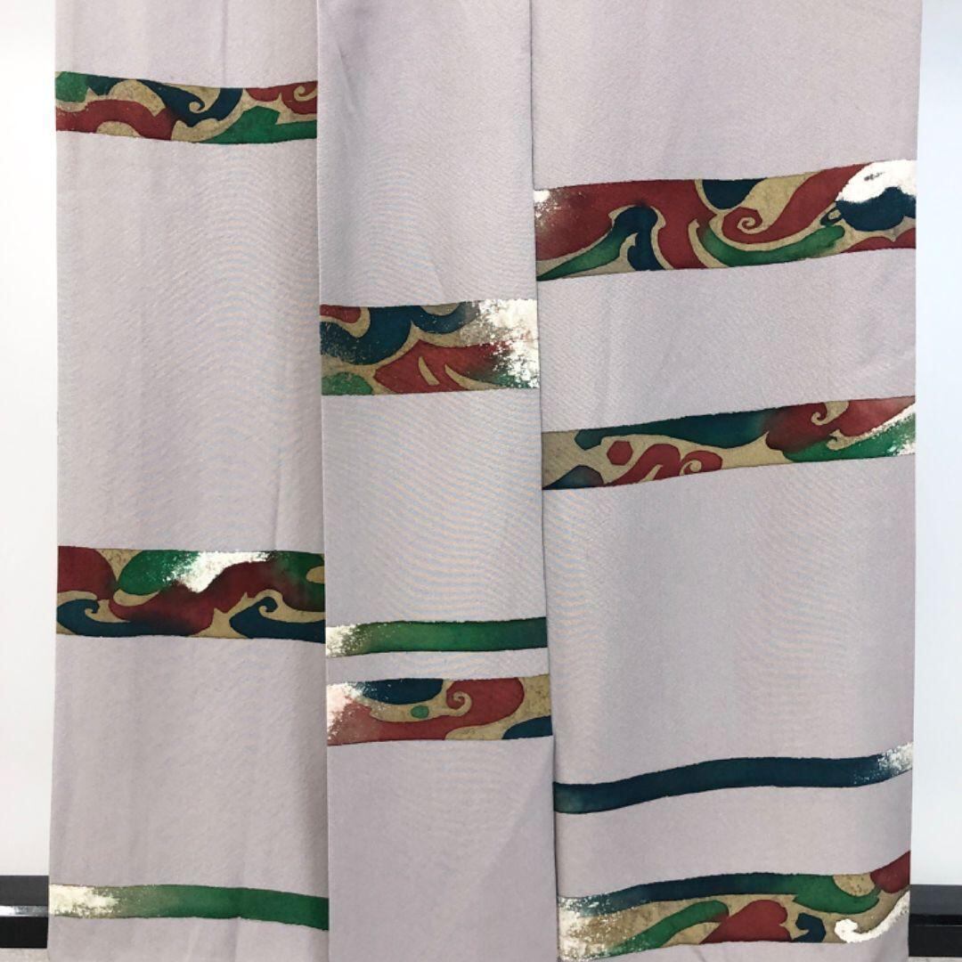 付下げ 作家物 抽象模様 小町鼠色 縮緬 K-5384 着物 きもの kimono 和服 和装 中古 リサイクル着物 【送料無料】
