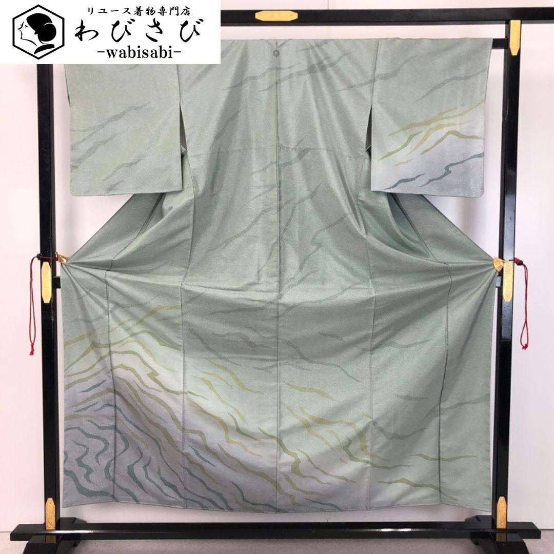 付下げ 染大島 抽象模様 叩き染 裏葉色 しつけ糸 K-5381 着物 きもの kimono 和服 和装 中古 リサイクル着物 【送料無料】