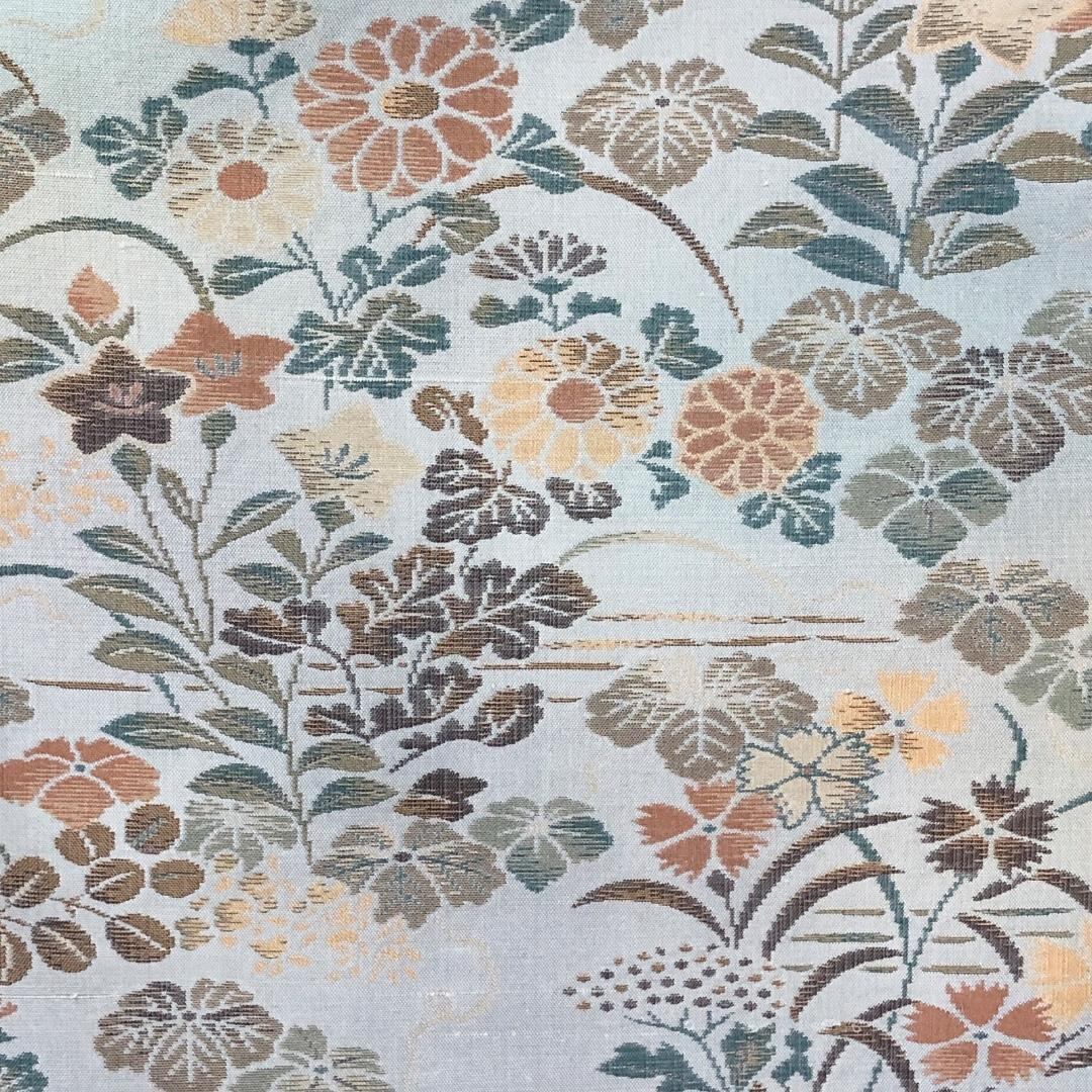 灰色ベースのお色味に暈し、雰囲気の良い花模様がデザインされた素敵なお品でございます。