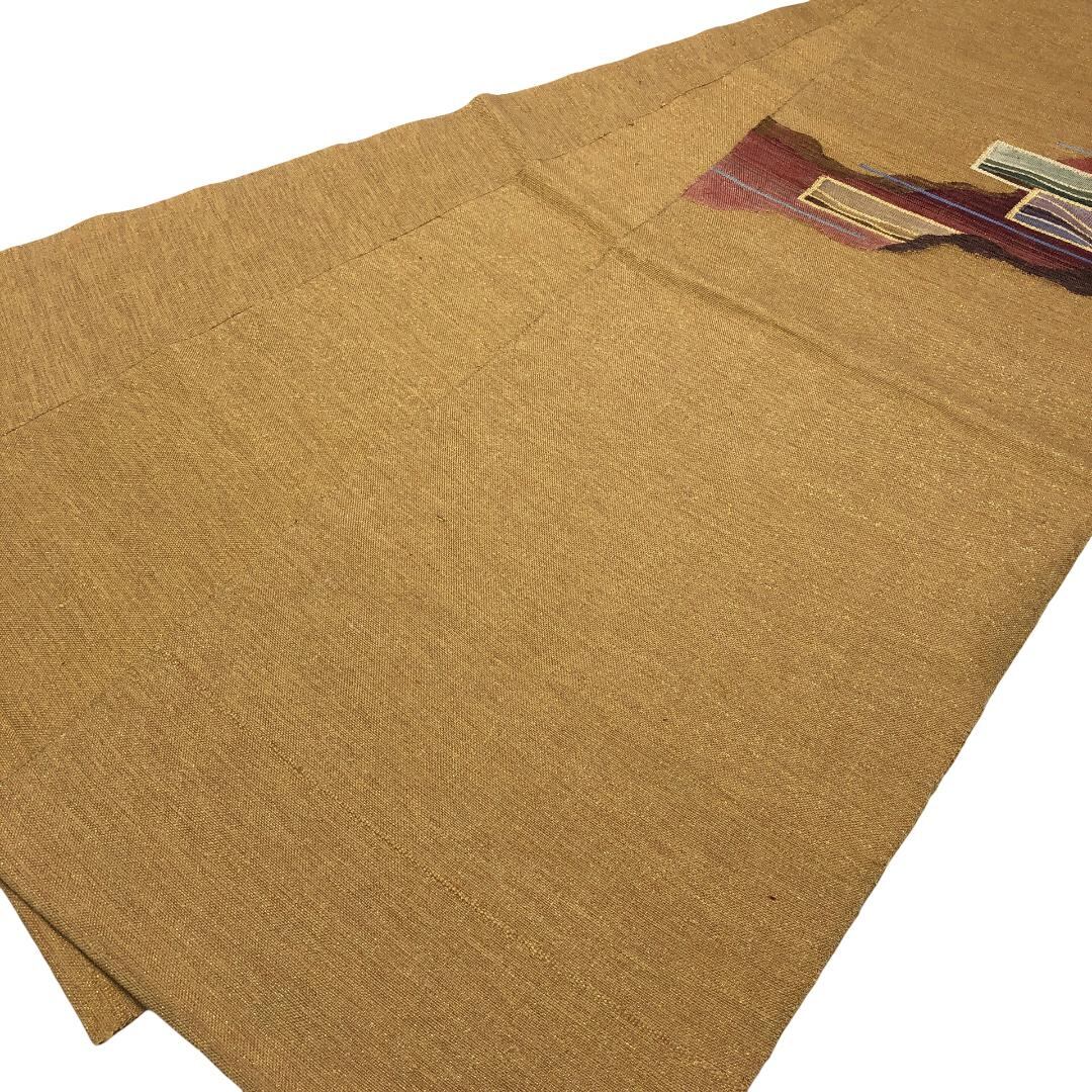 麦藁色のお色味の紬地に抽象模様がデザインされた雰囲気の良い素敵な柄裄のお品でございます。
