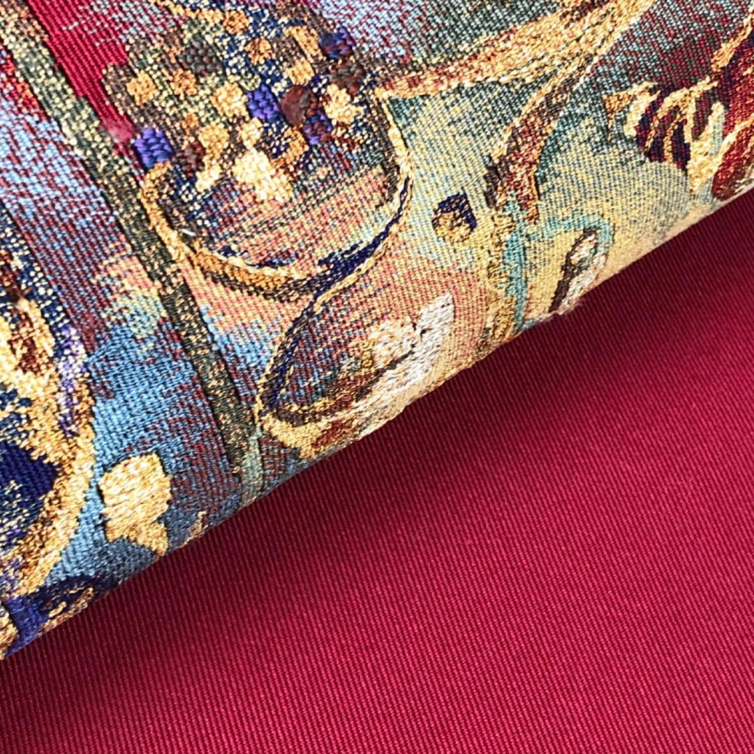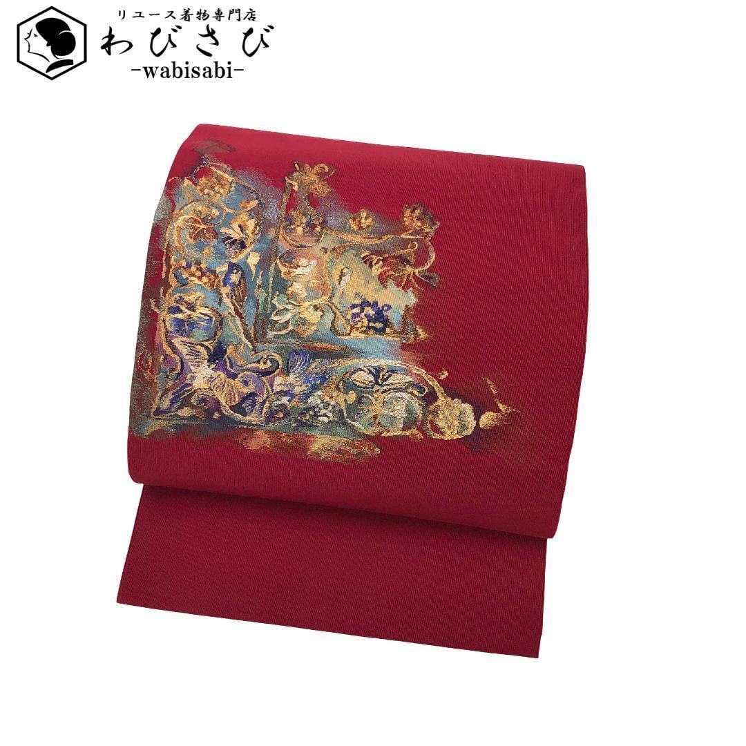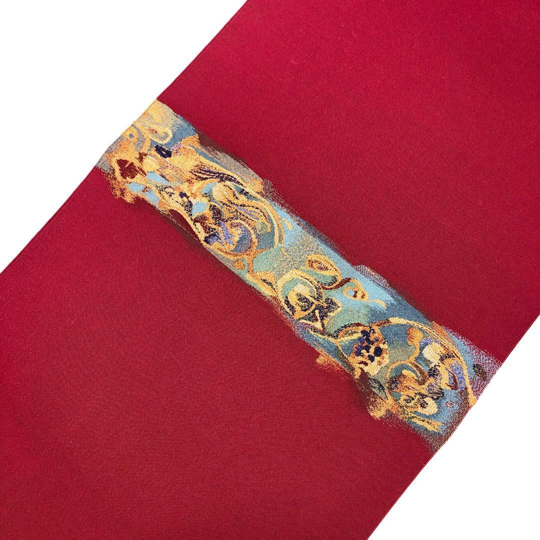 真紅色の鮮やかなお色味に抽象花模様がデザインされた雰囲気の良い素敵なお品でございます。