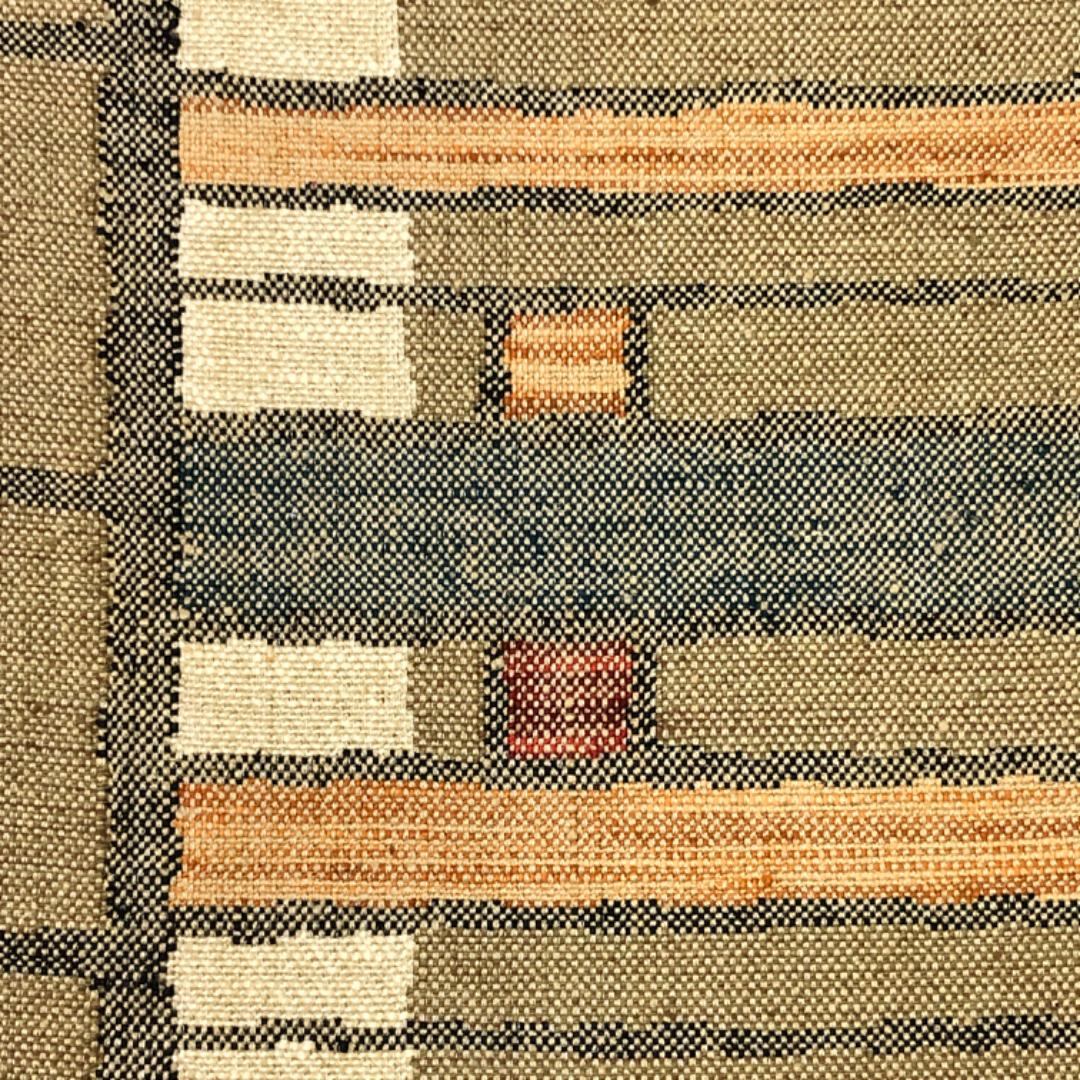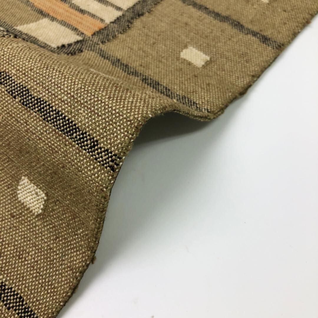 豆殻茶色のお色味に横縞、四角模様がデザインされた素敵なお品でございます。