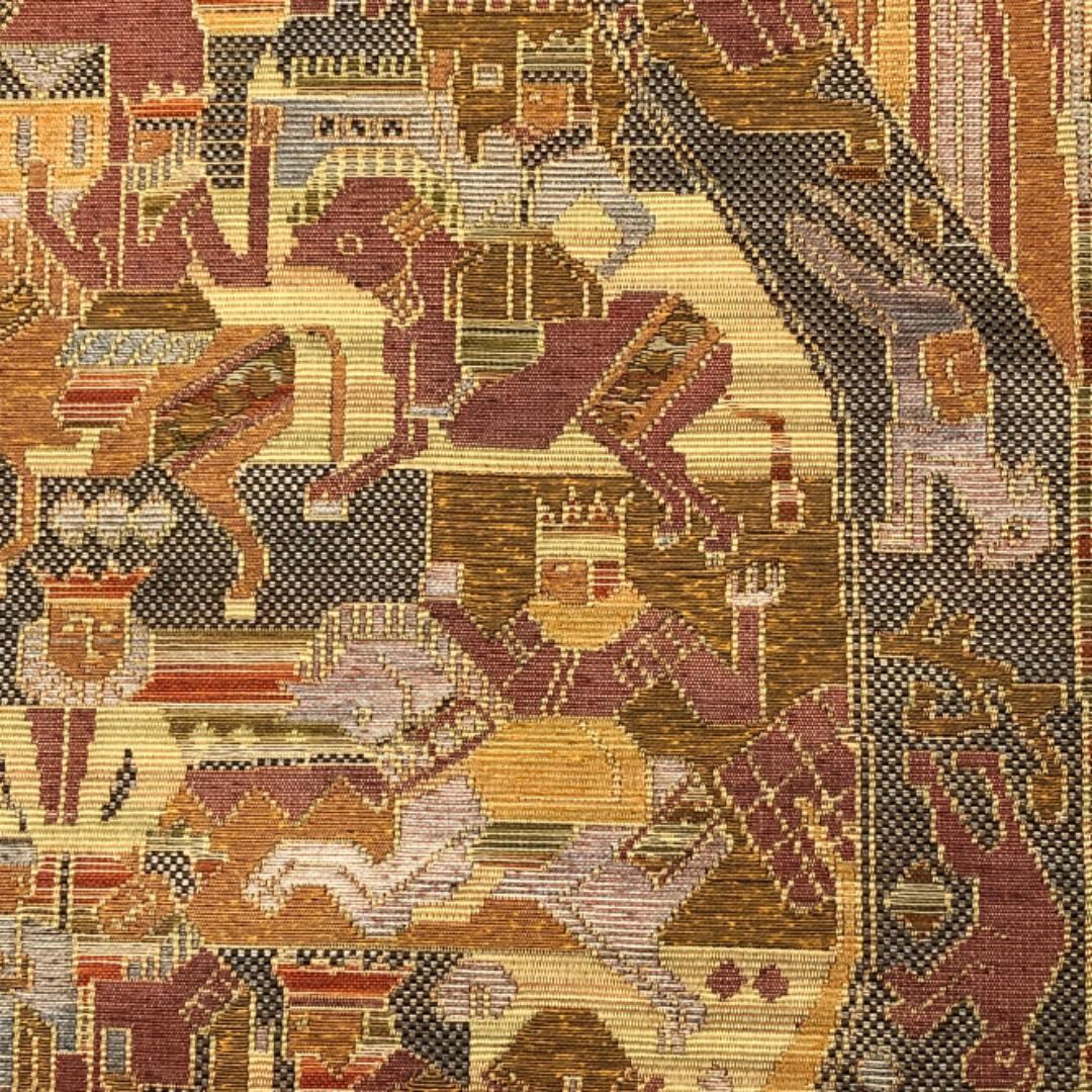 木蘭色ベースのお色味に壁画模様、動物などがデザインされた雰囲気の良い素敵な柄裄のお品でございます。