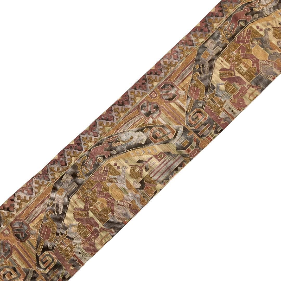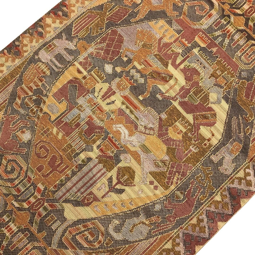 名古屋帯 壁画模様 動物 木蘭色 O-5567 着物 きもの kimono 和服 和装 中古 リサイクル着物 【送料無料】
