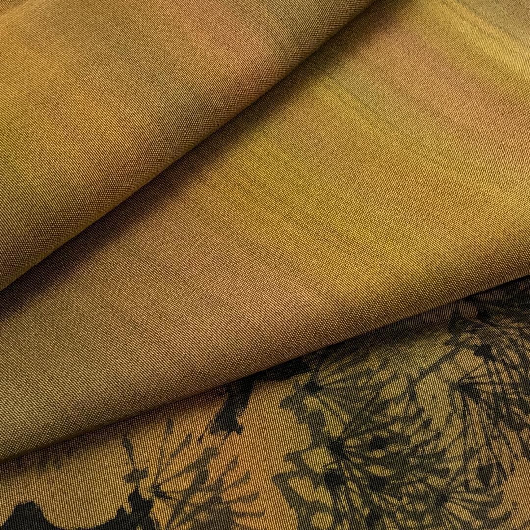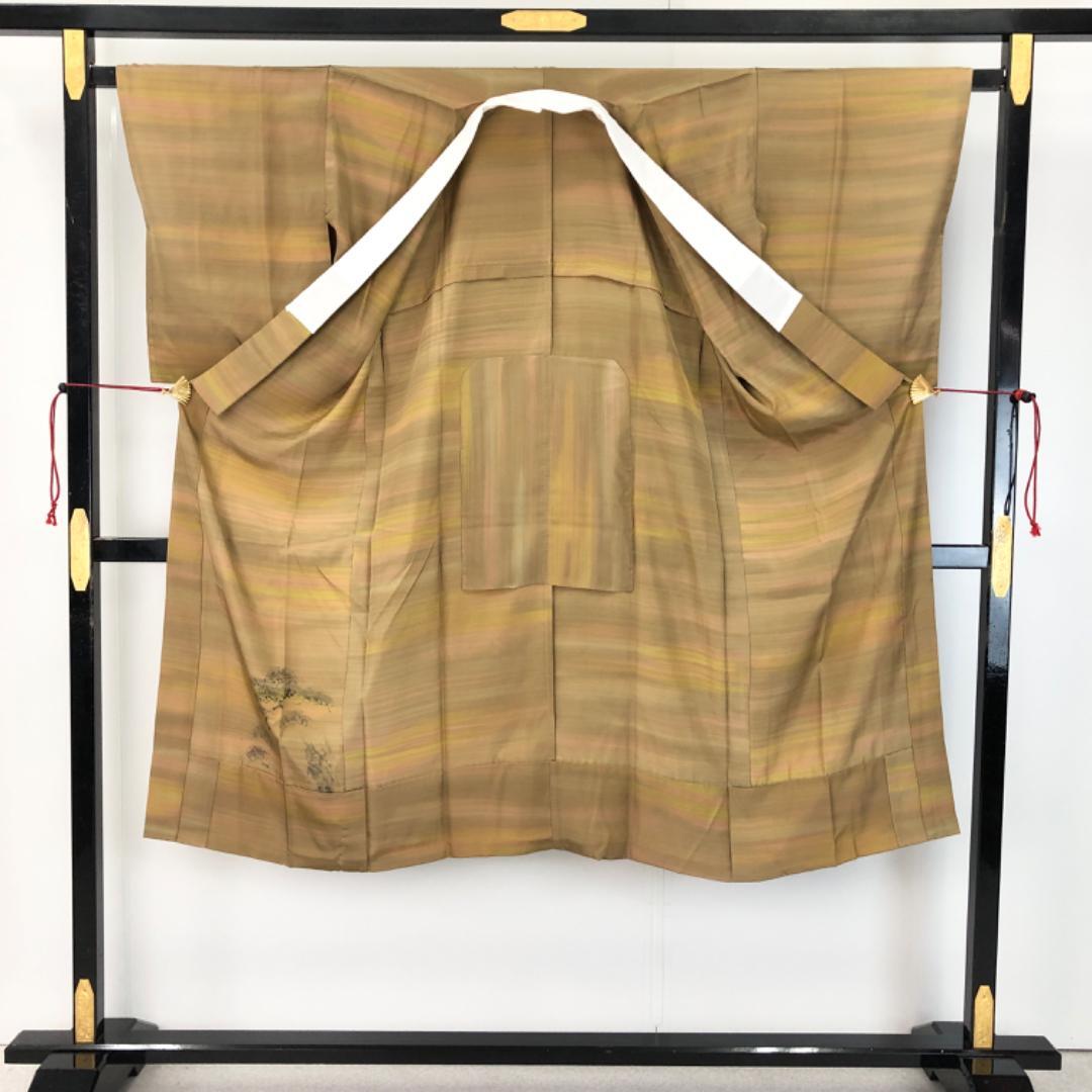 桑染色ベースのお色味に暈し、墨描きの松の柄裄がデザインされた素敵なお品でございます。