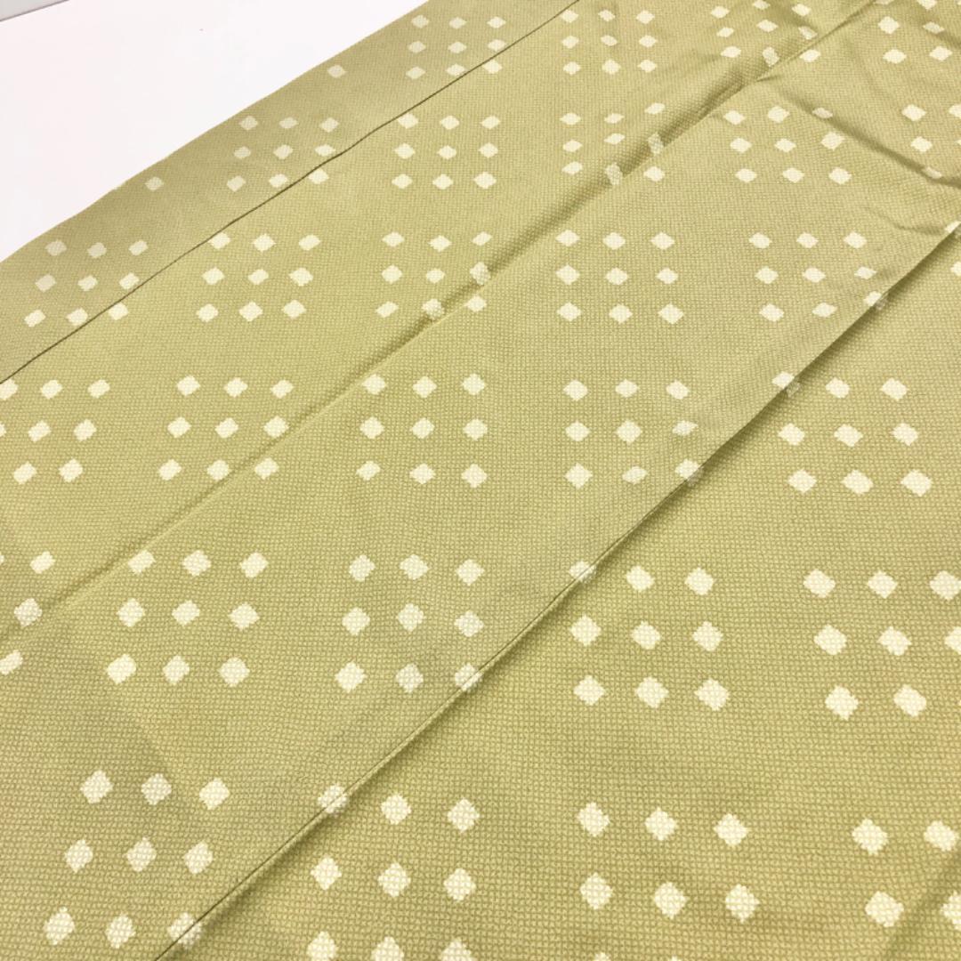 裏柳色のお色味に四角柄がデザインされた素敵な柄裄のお品でございます。