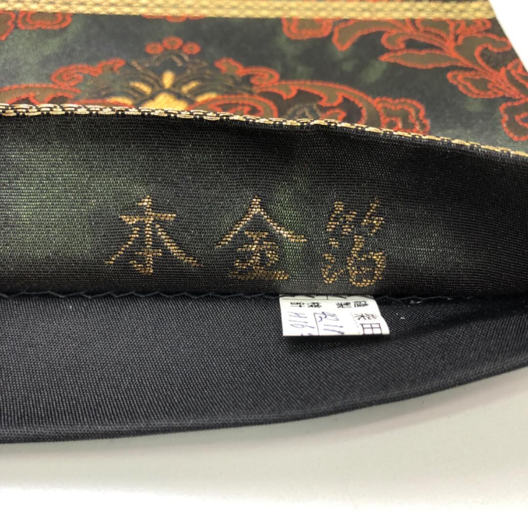 袋帯 更紗華文 本金箔 美しい華柄模様 黒色 O-5632 着物 きもの kimono 和服 和装 中古 リサイクル着物 【送料無料】