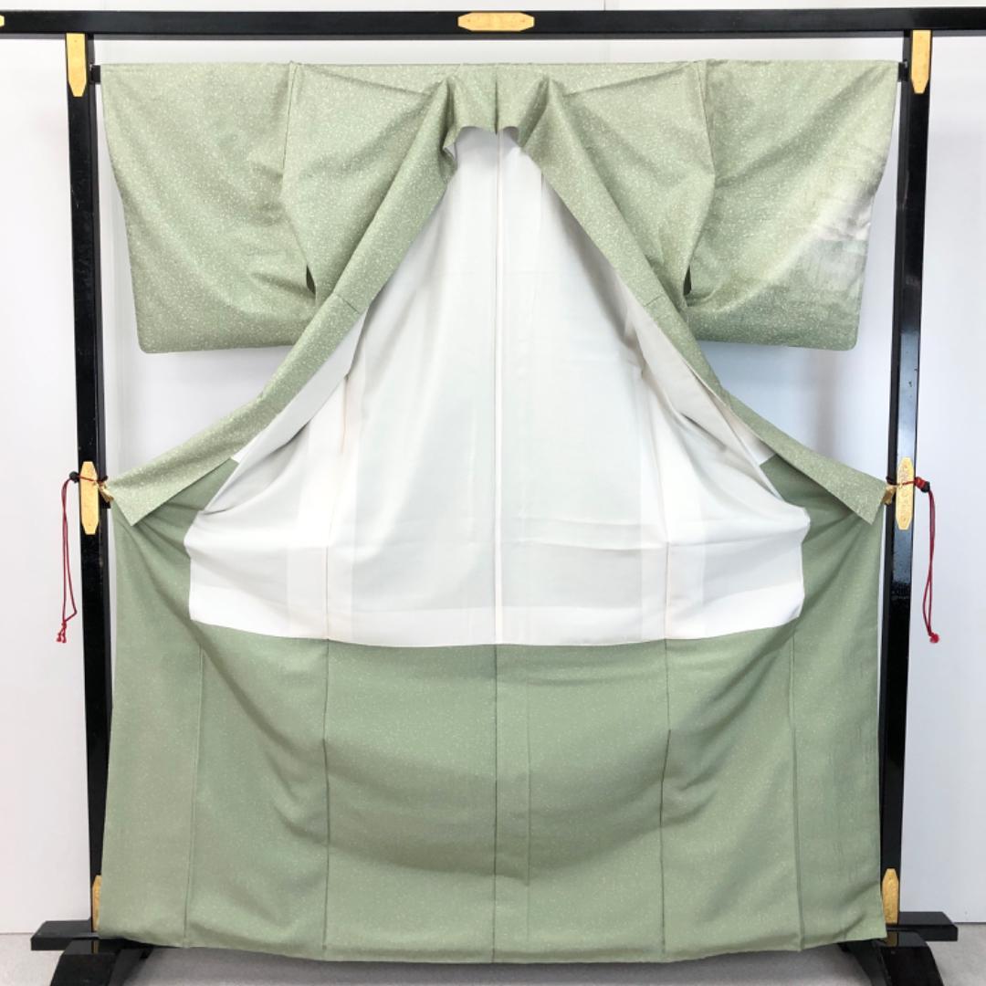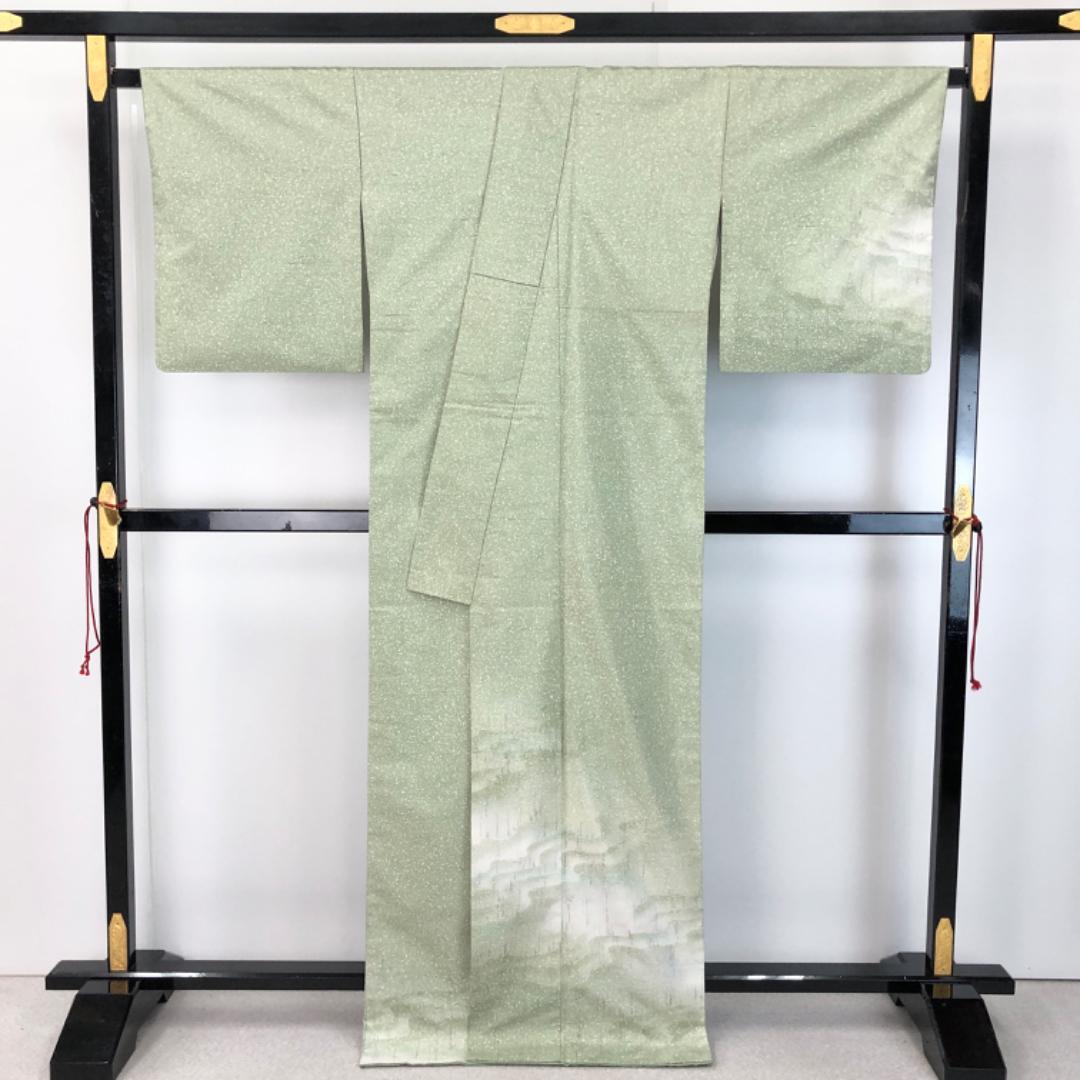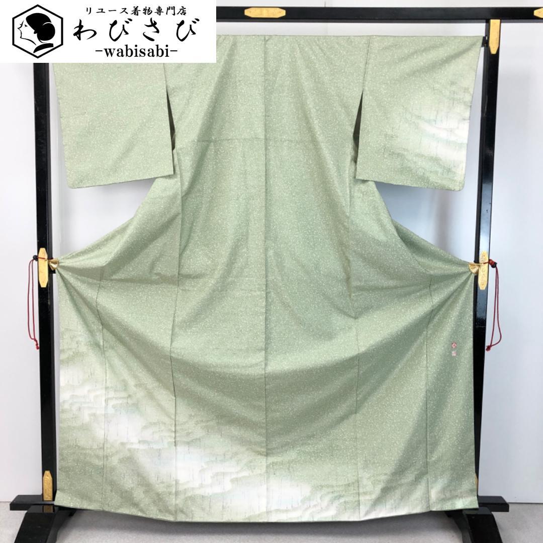 牛首紬 白山工房 付下げ 証紙付 作家物 若緑色 トールサイズ K-5416 着物 きもの kimono 和服 和装 中古 リサイクル着物 【送料無料】