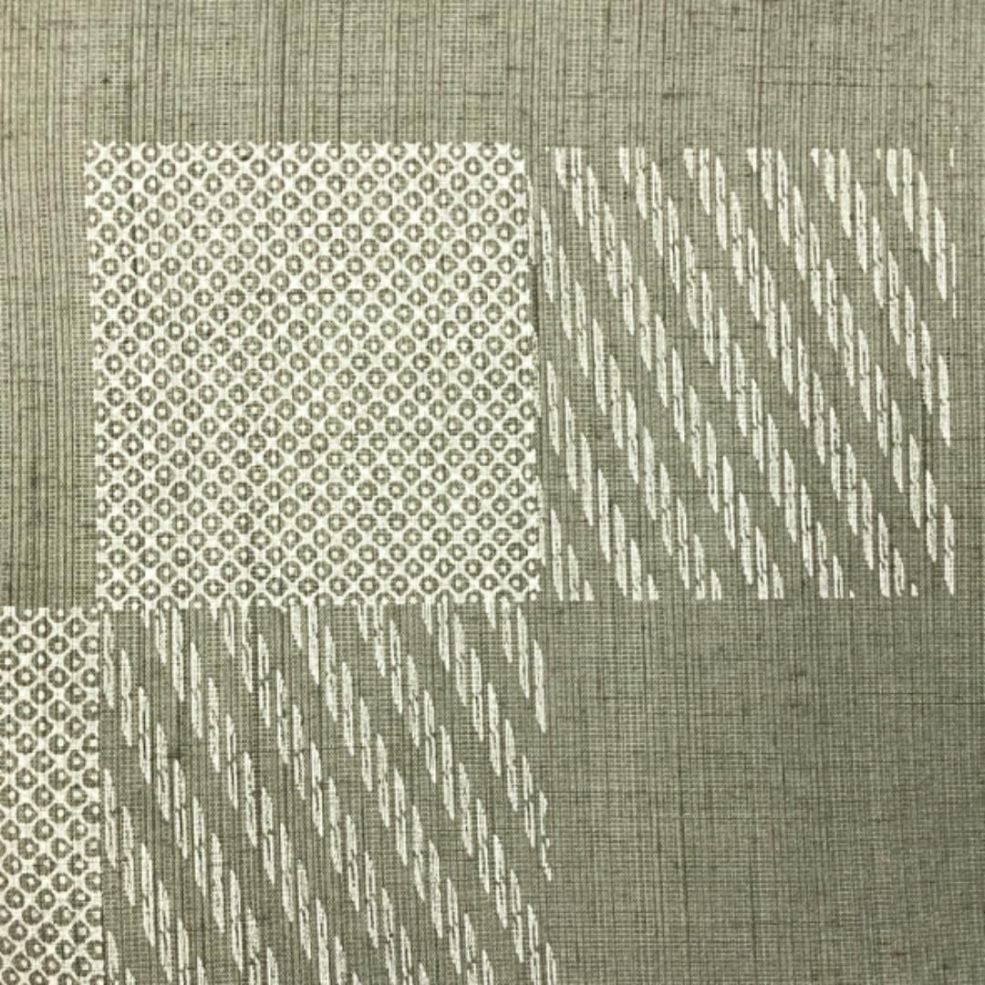 利休鼠色の上品なお色味、四角に蔓葉模様がデザインされた雰囲気の良い素敵な柄裄のお品でございます。