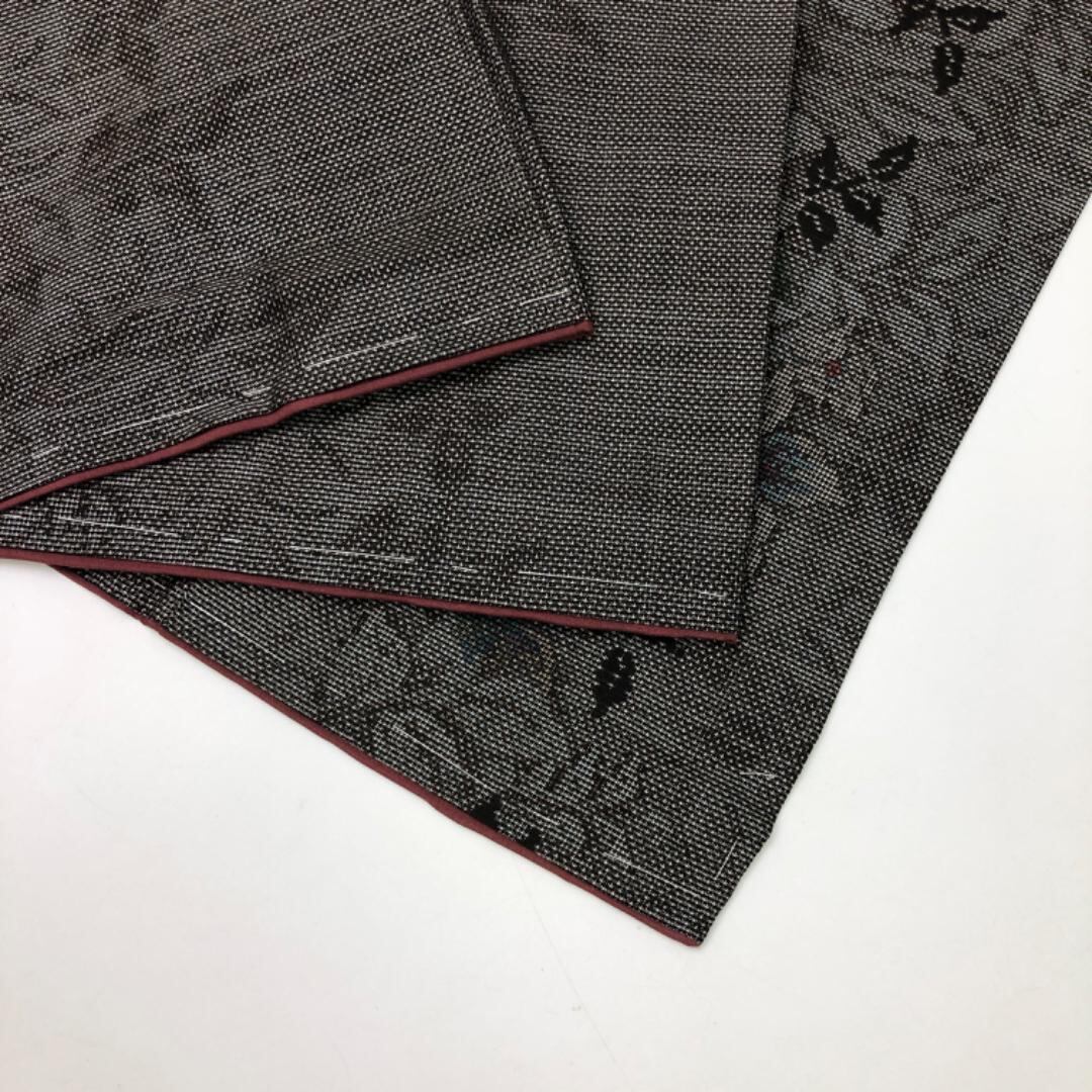 茶泥染の落ち着きあるお色味に縦柄花模様がデザインされた素敵なお品でございます。