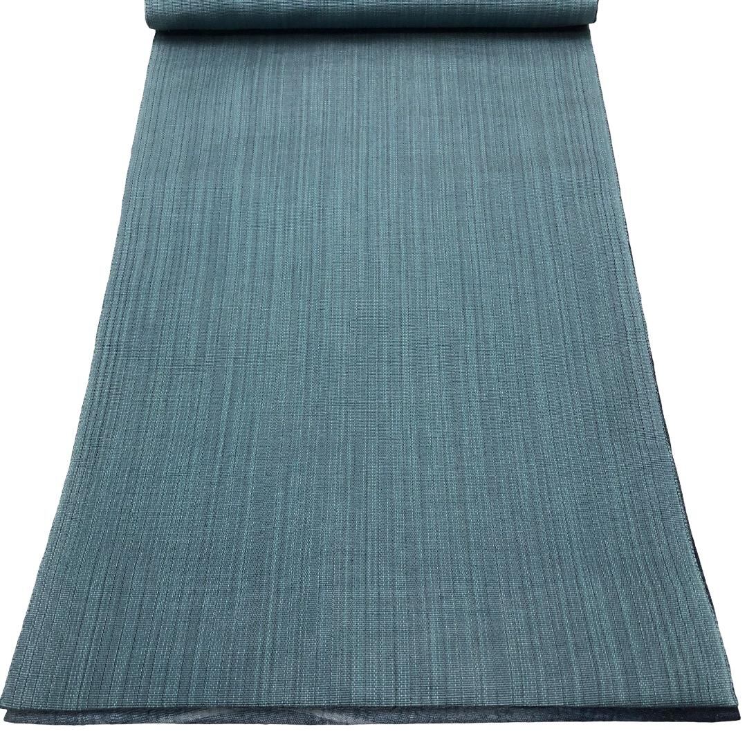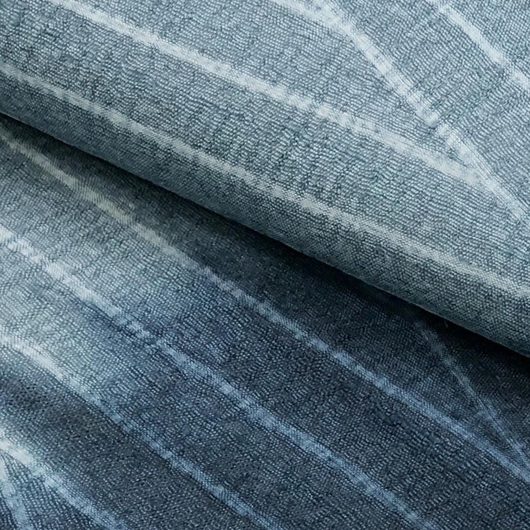 青袋鼠色ベースの青味の染分けのお色味に抽象模様がデザインされた素敵な柄裄のお品でございます。