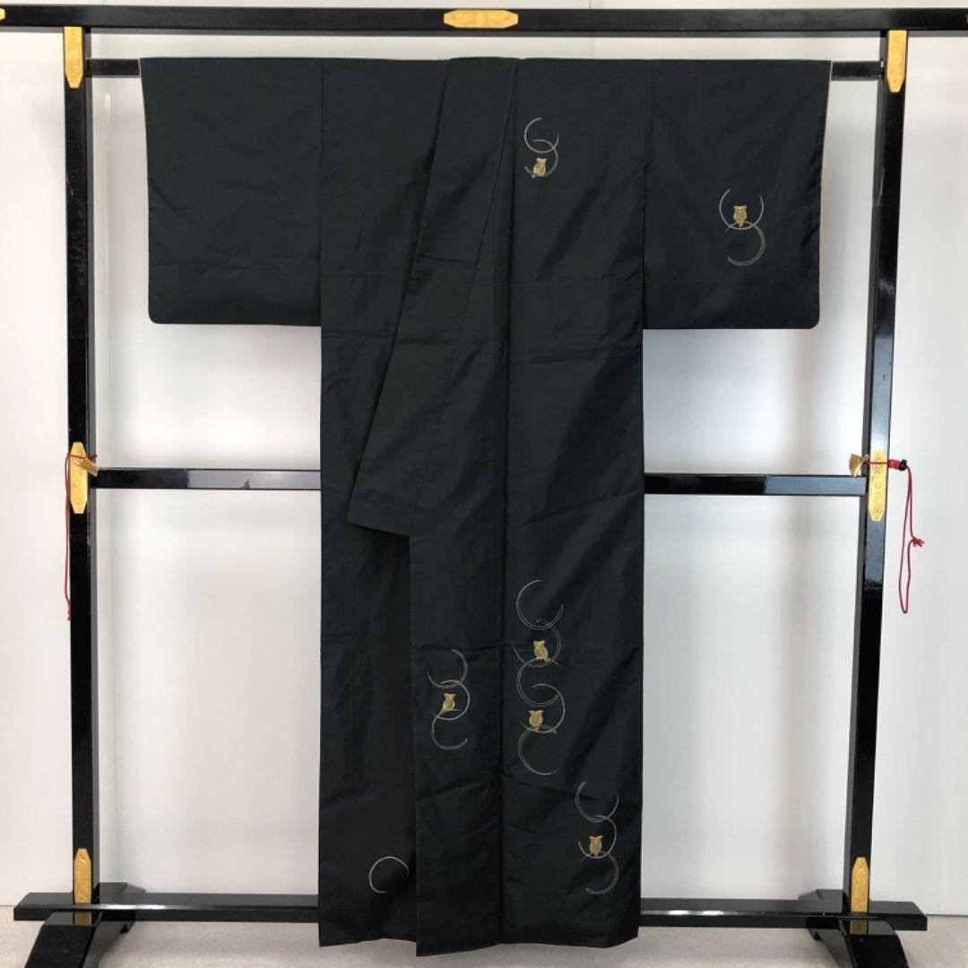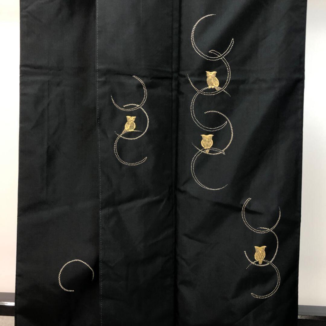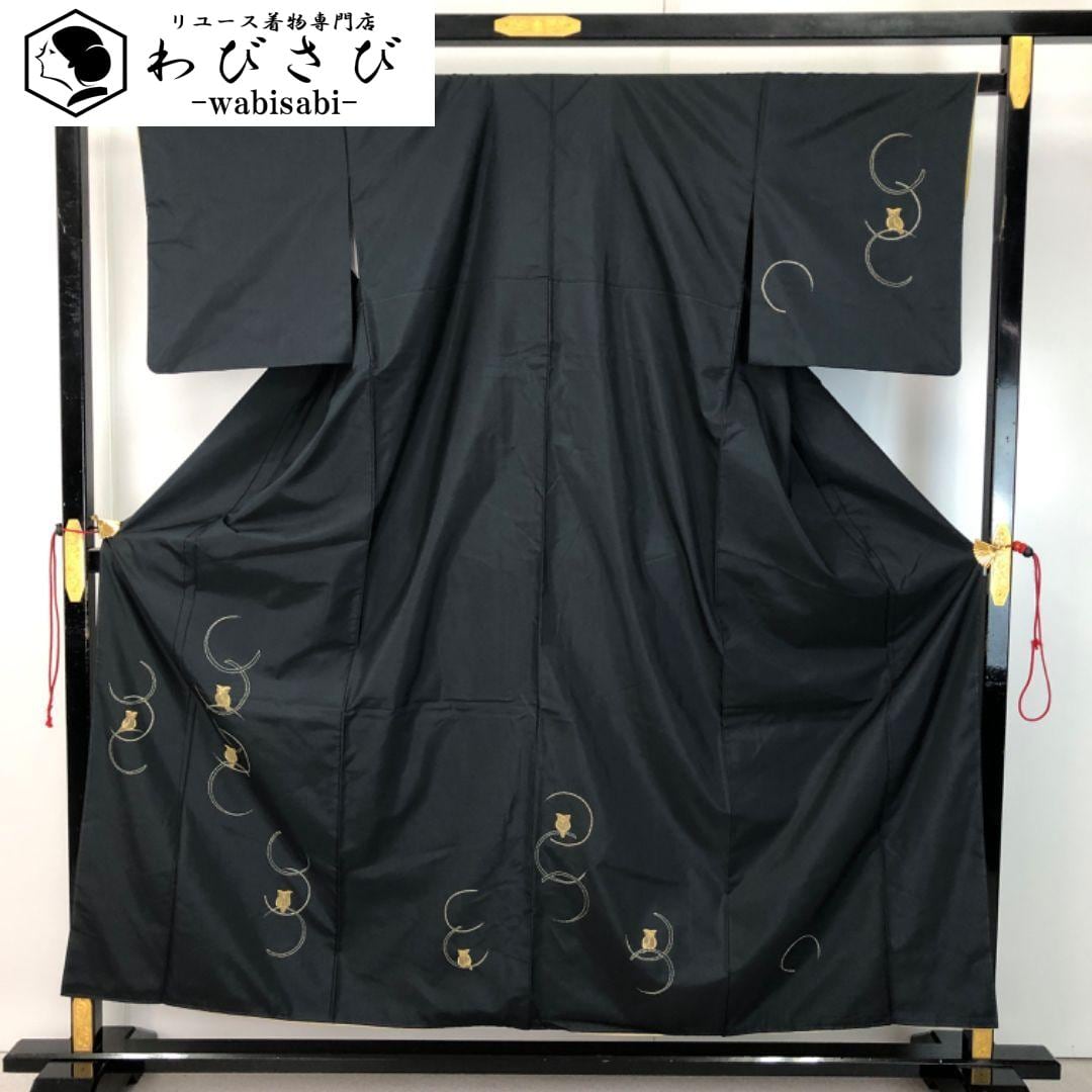 黒色のお色味に全て刺し子でデザインされた木兎の柄裄が素敵な雰囲気の良いお品でございます。