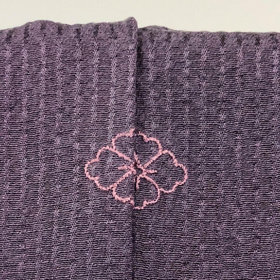 紫烏色の落ち着きのあるお色味に花模様などの絞り柄がデザインされた雰囲気の良い素敵なお品でございます。