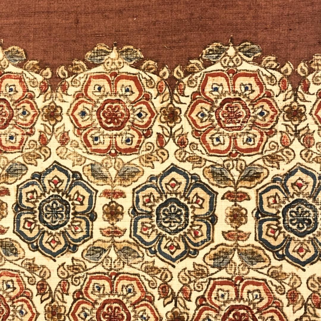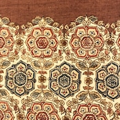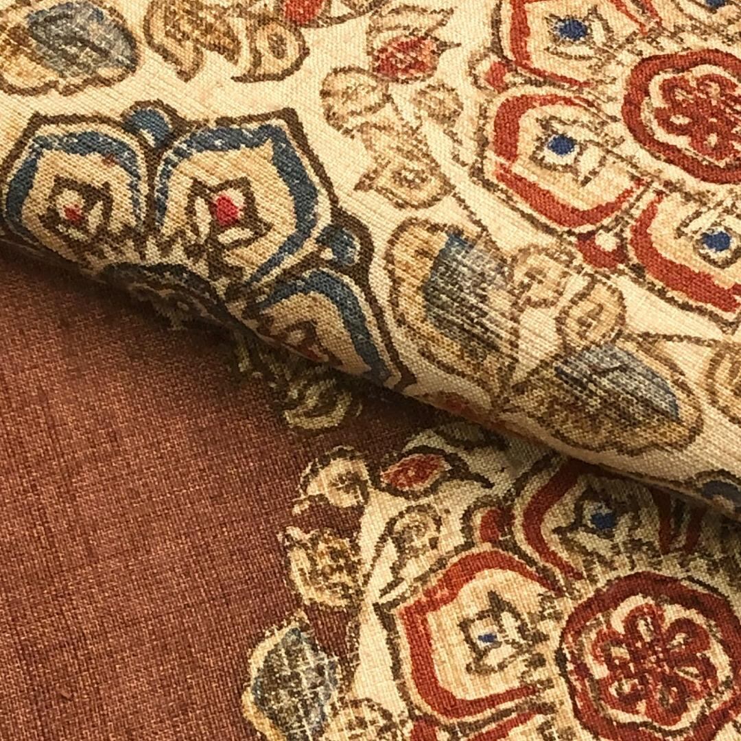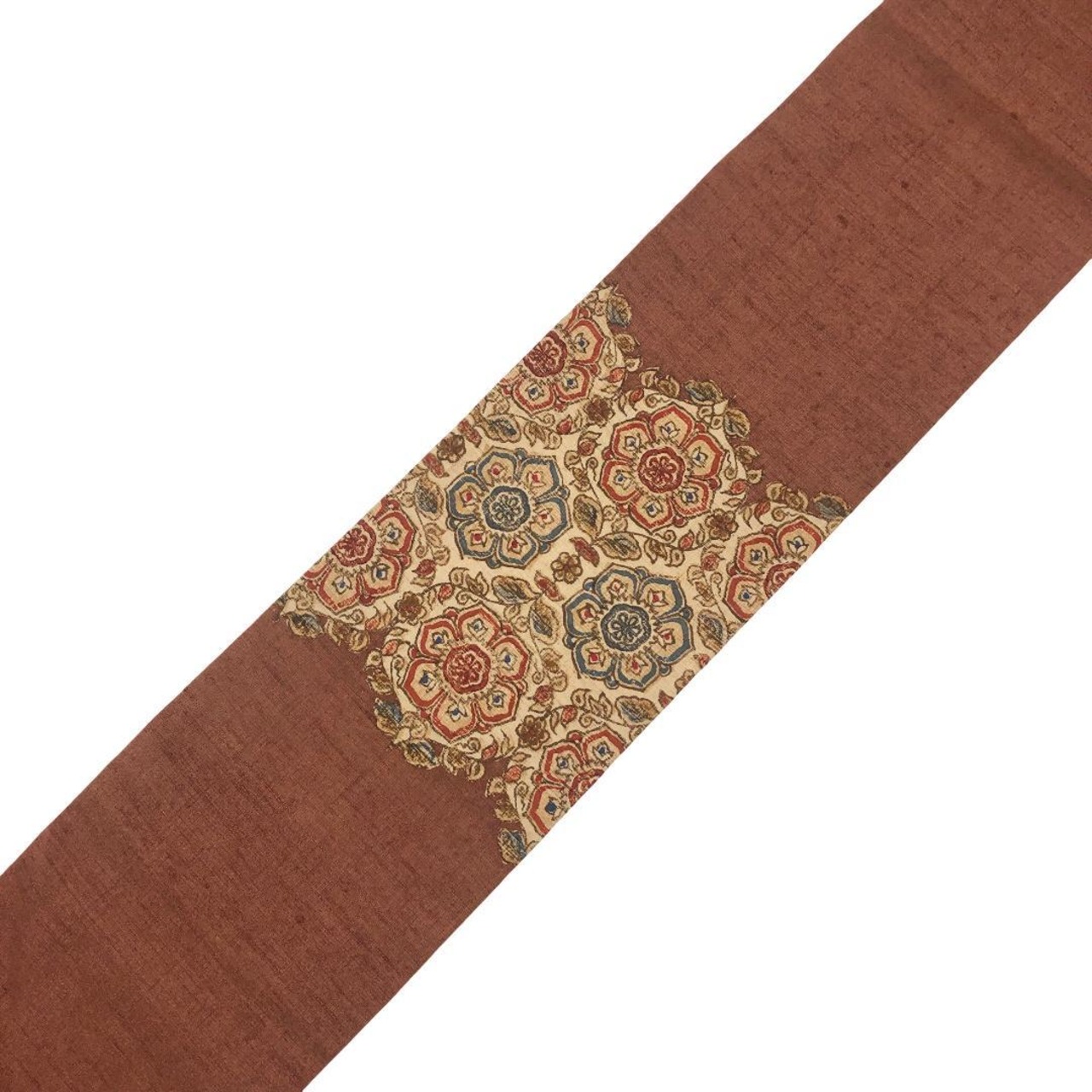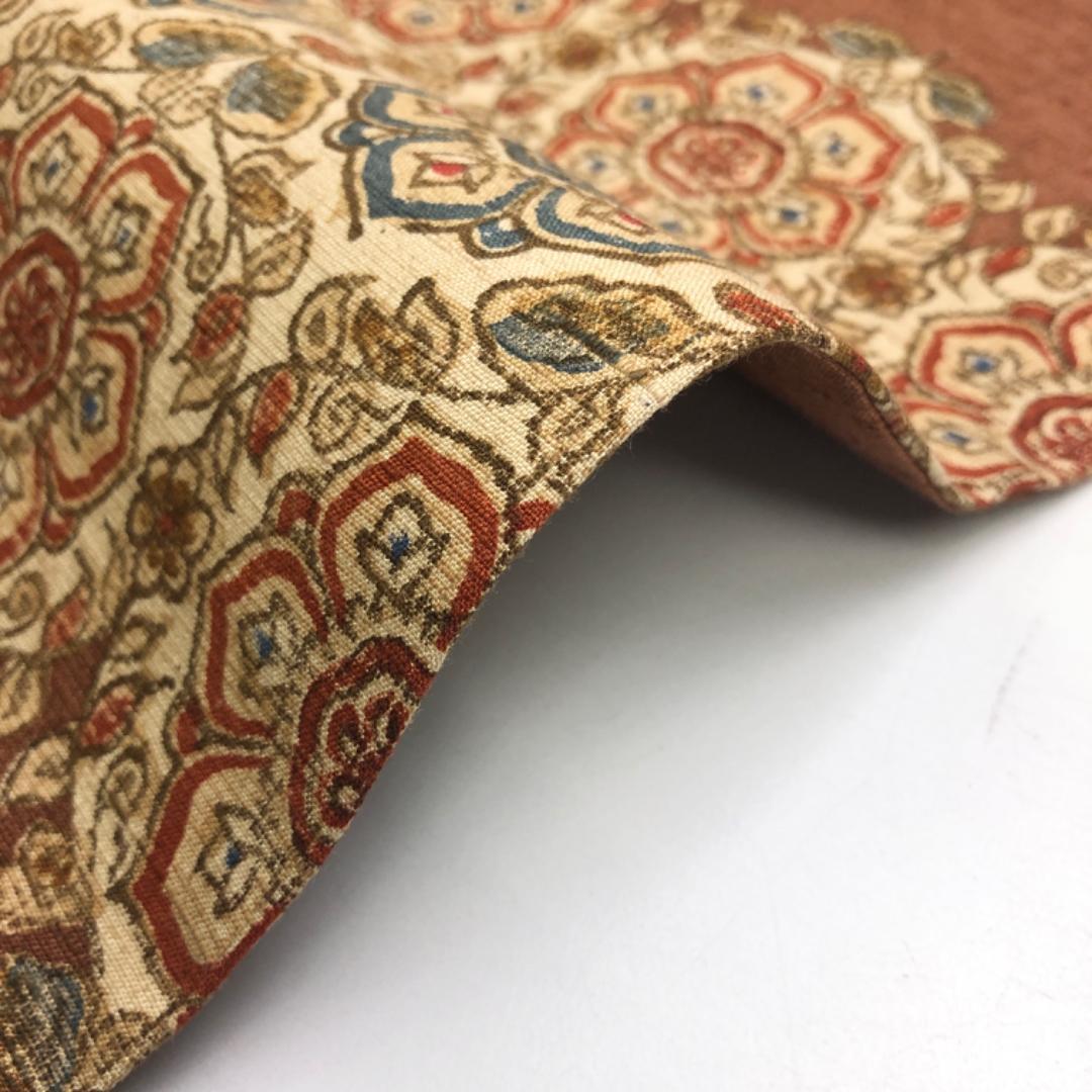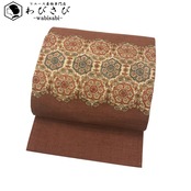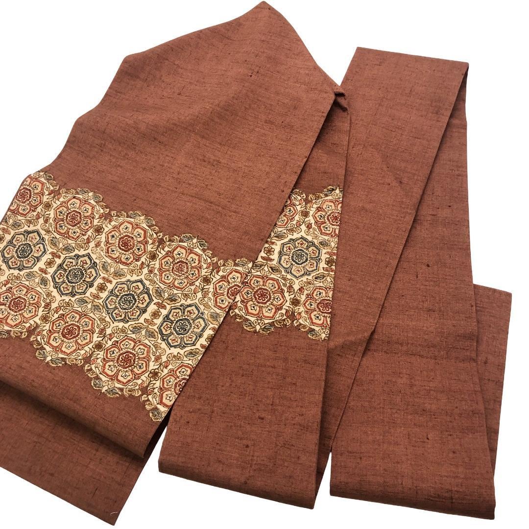 赤白橡色の落ち着いたお色味の紬地に華柄模様がデザインされた雰囲気の良い素敵なお品でございます。