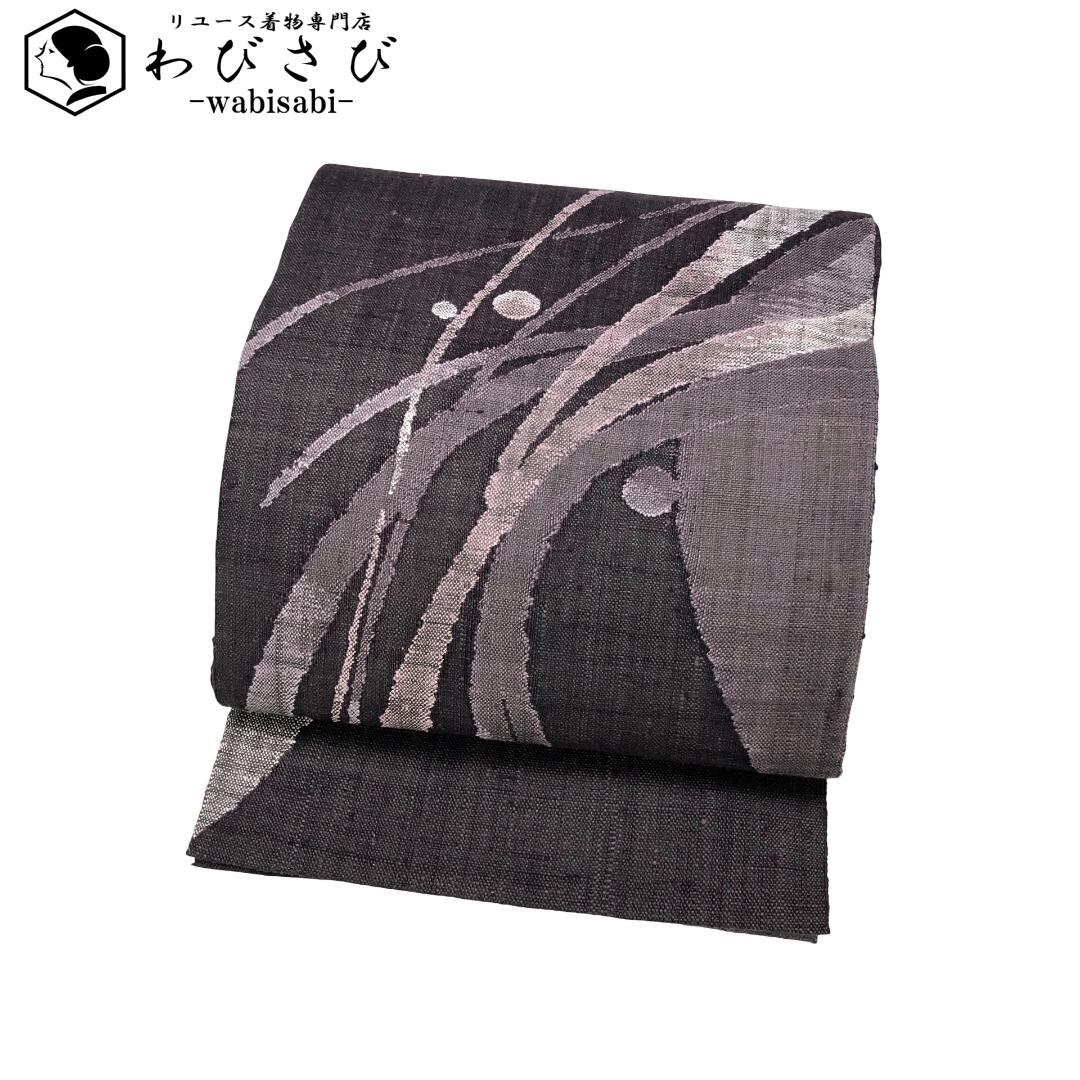 名古屋帯 真綿紬 抽象模様 今鶴色 O-5586 着物 きもの kimono 和服 和装 中古 リサイクル着物 【送料無料】