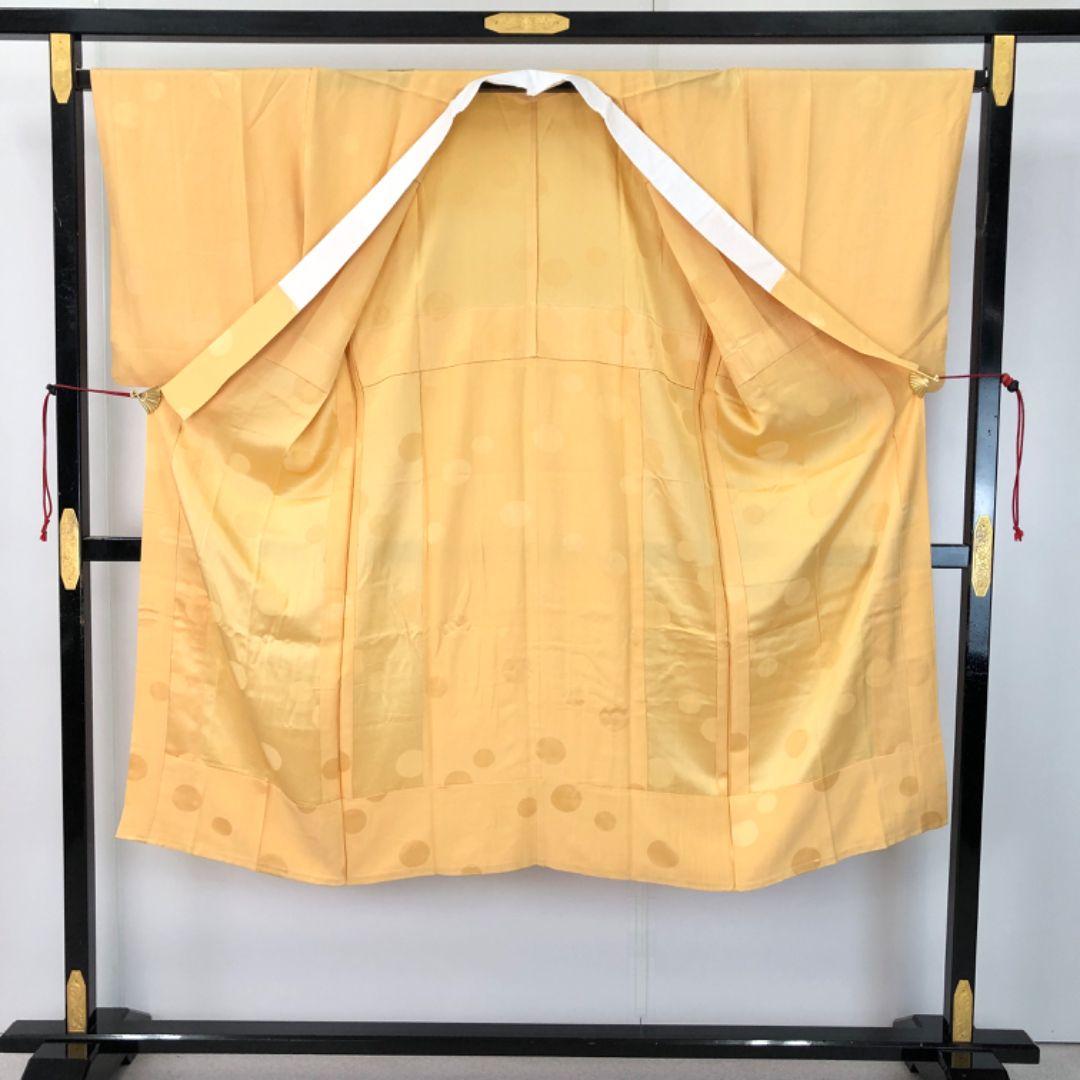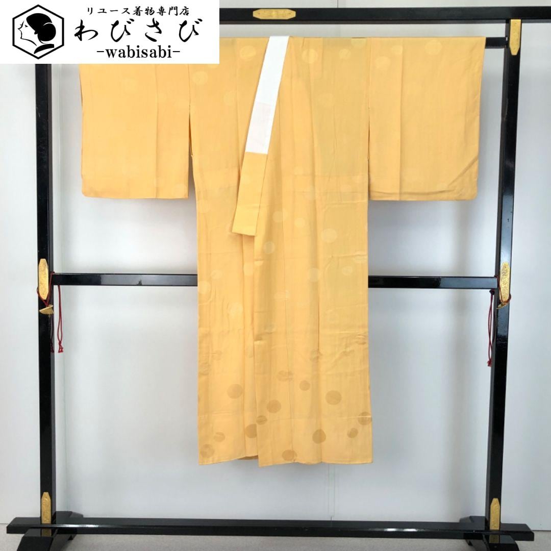 薄柑子色のお色味に水玉模様の柄裄がデザインされた素敵なお品でございます。