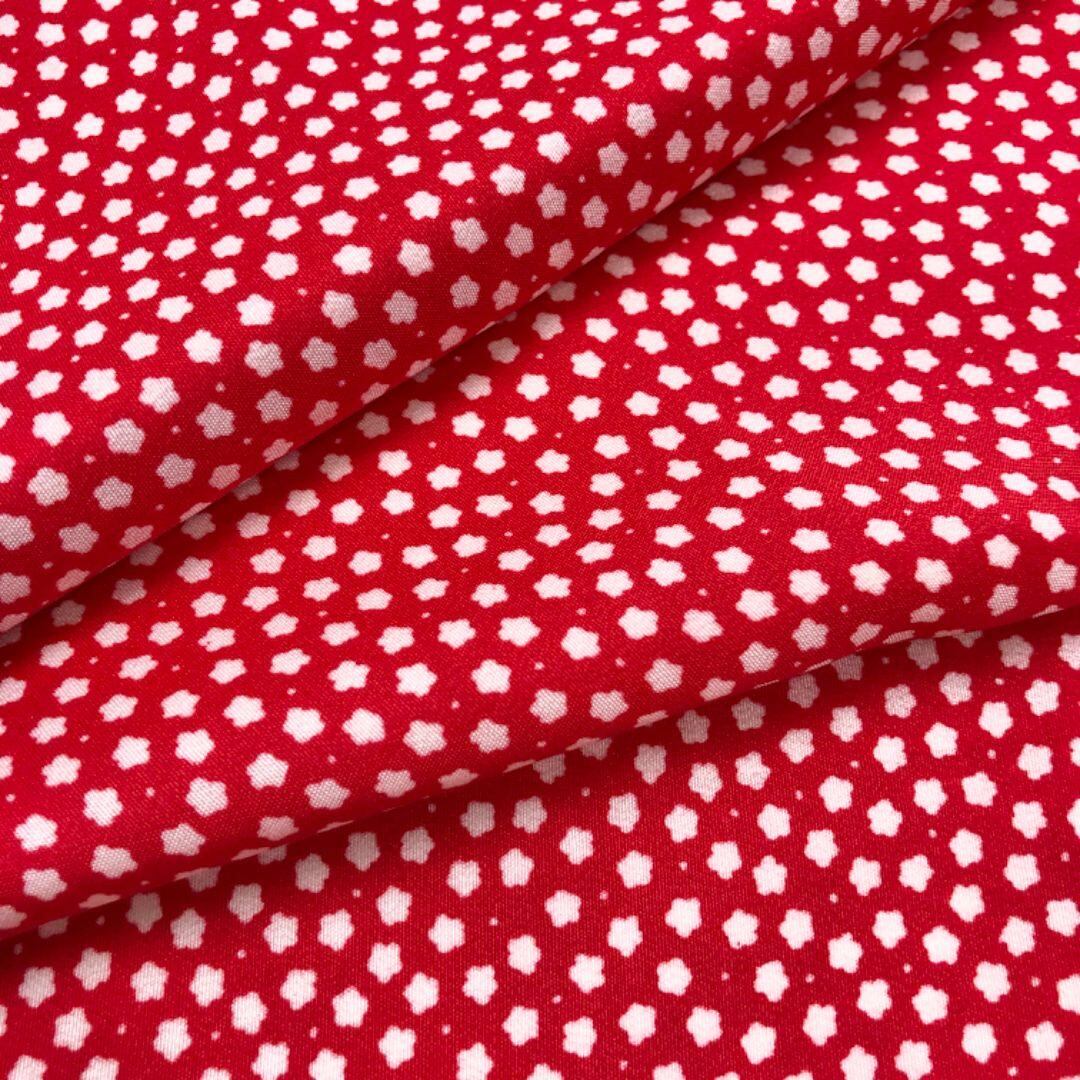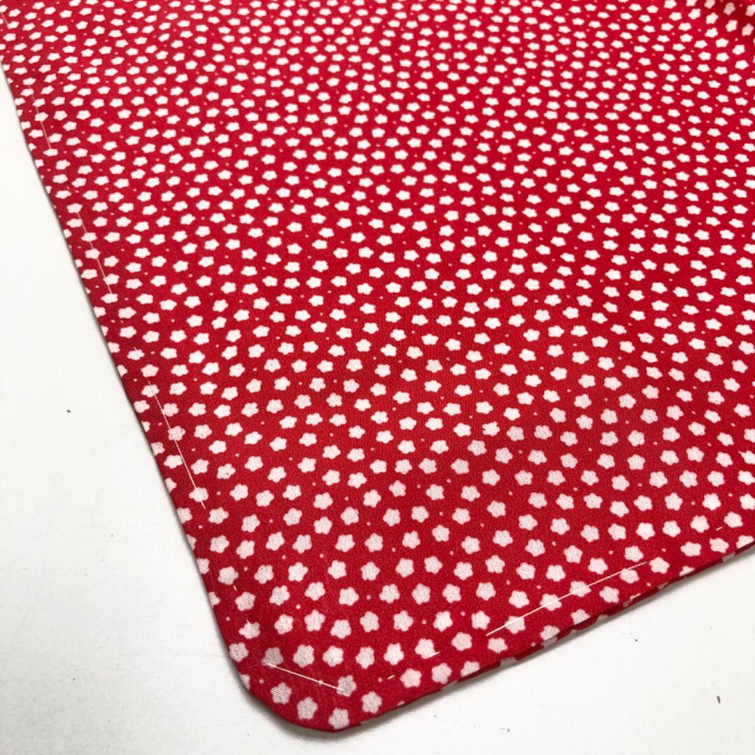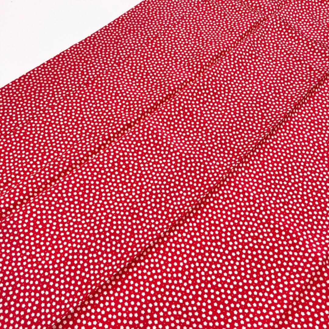 赤色のお色味に小さな花柄模様がデザインされた素敵な柄裄のお品でございます。