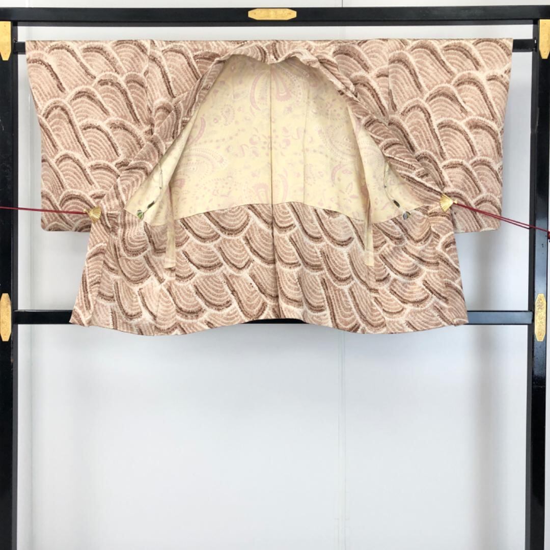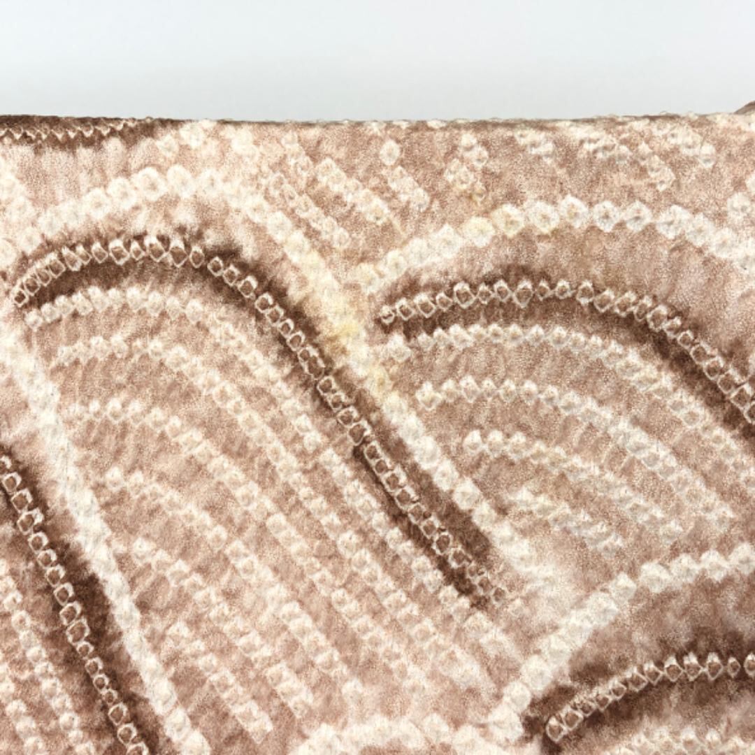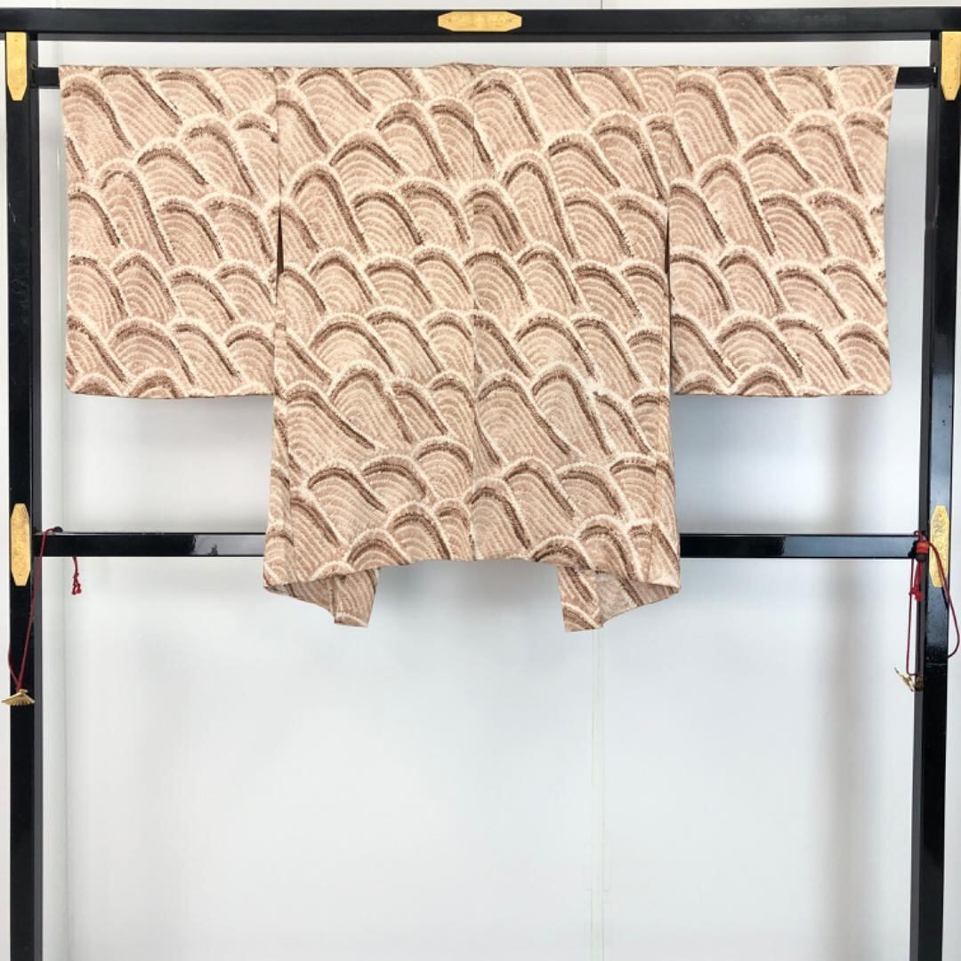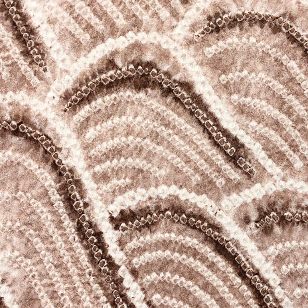 薄香色ベースのお色味に絞りの波模様がデザインされた雰囲気の良い素敵な柄裄のお品でございます。