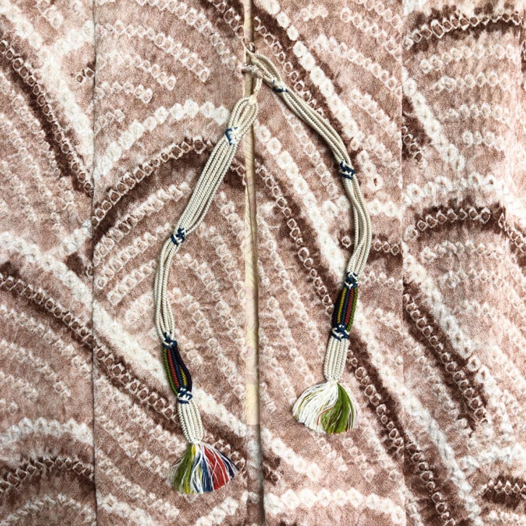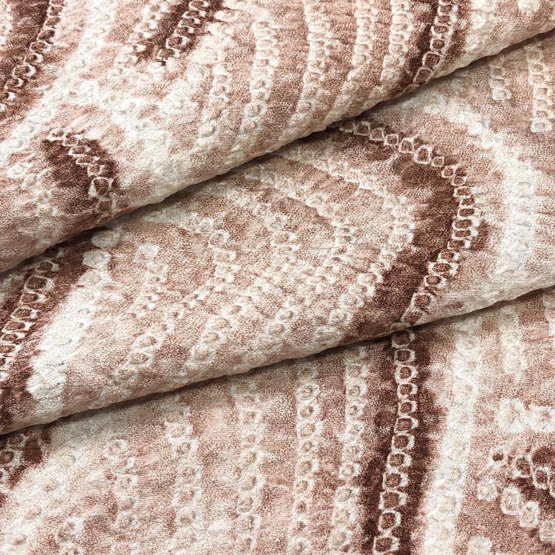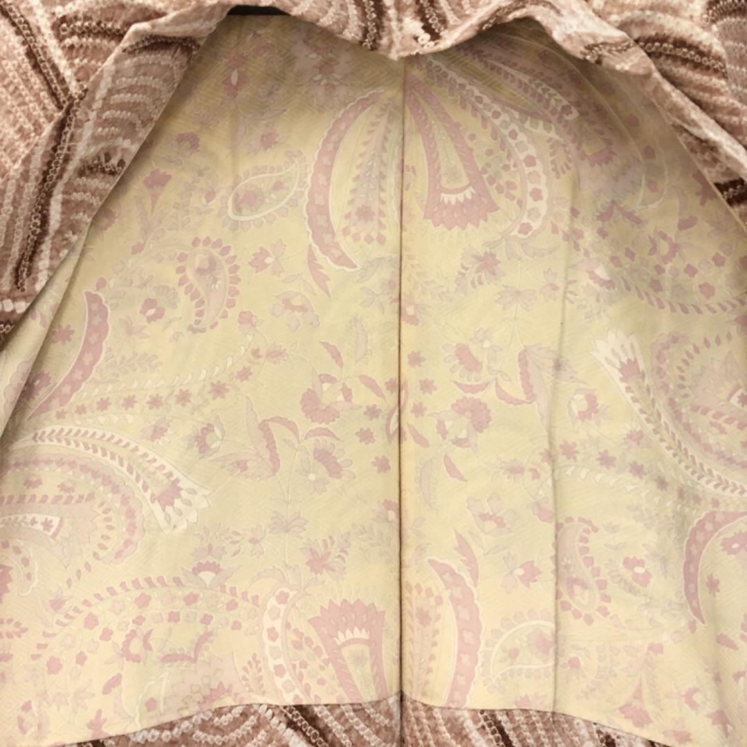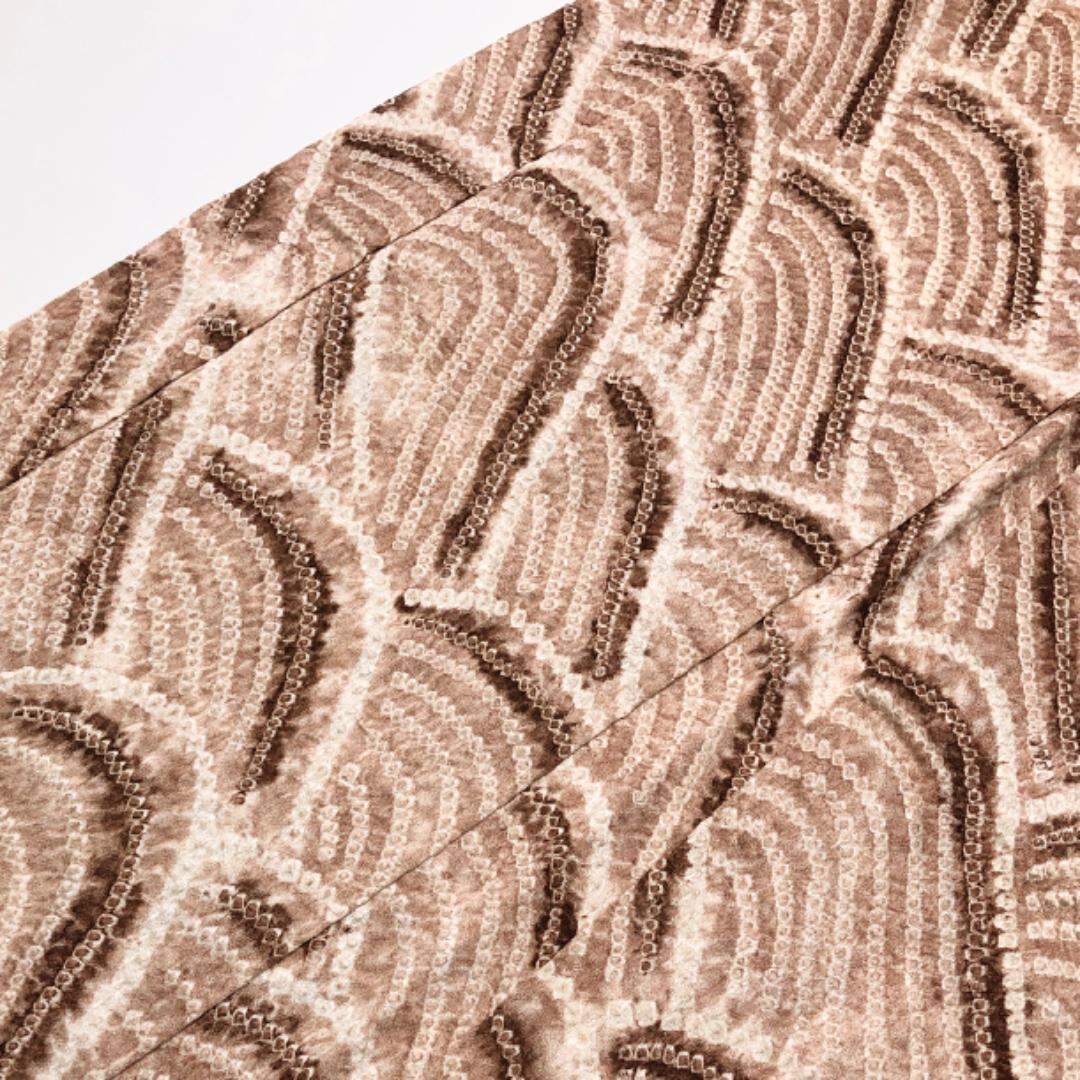 薄香色ベースのお色味に絞りの波模様がデザインされた雰囲気の良い素敵な柄裄のお品でございます。