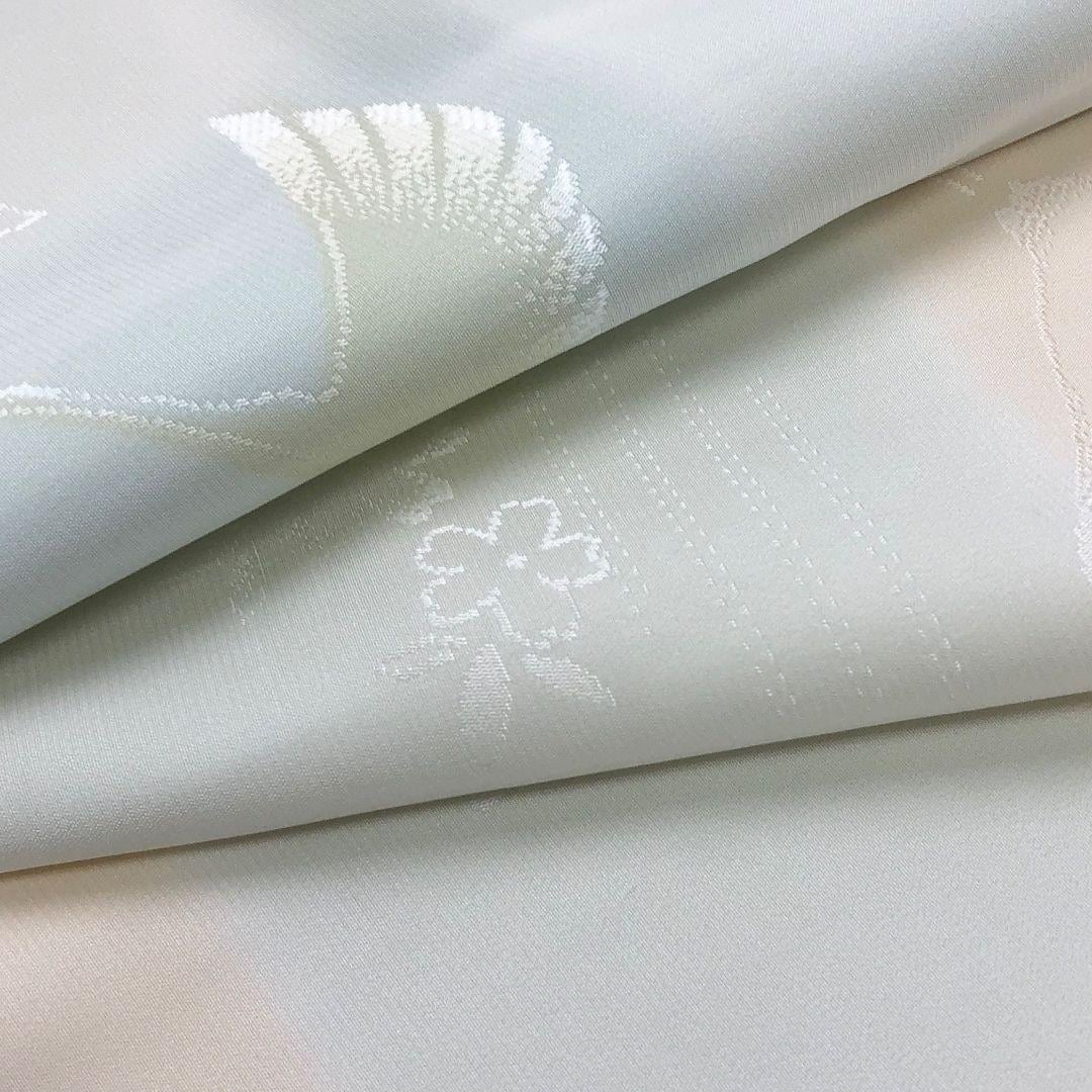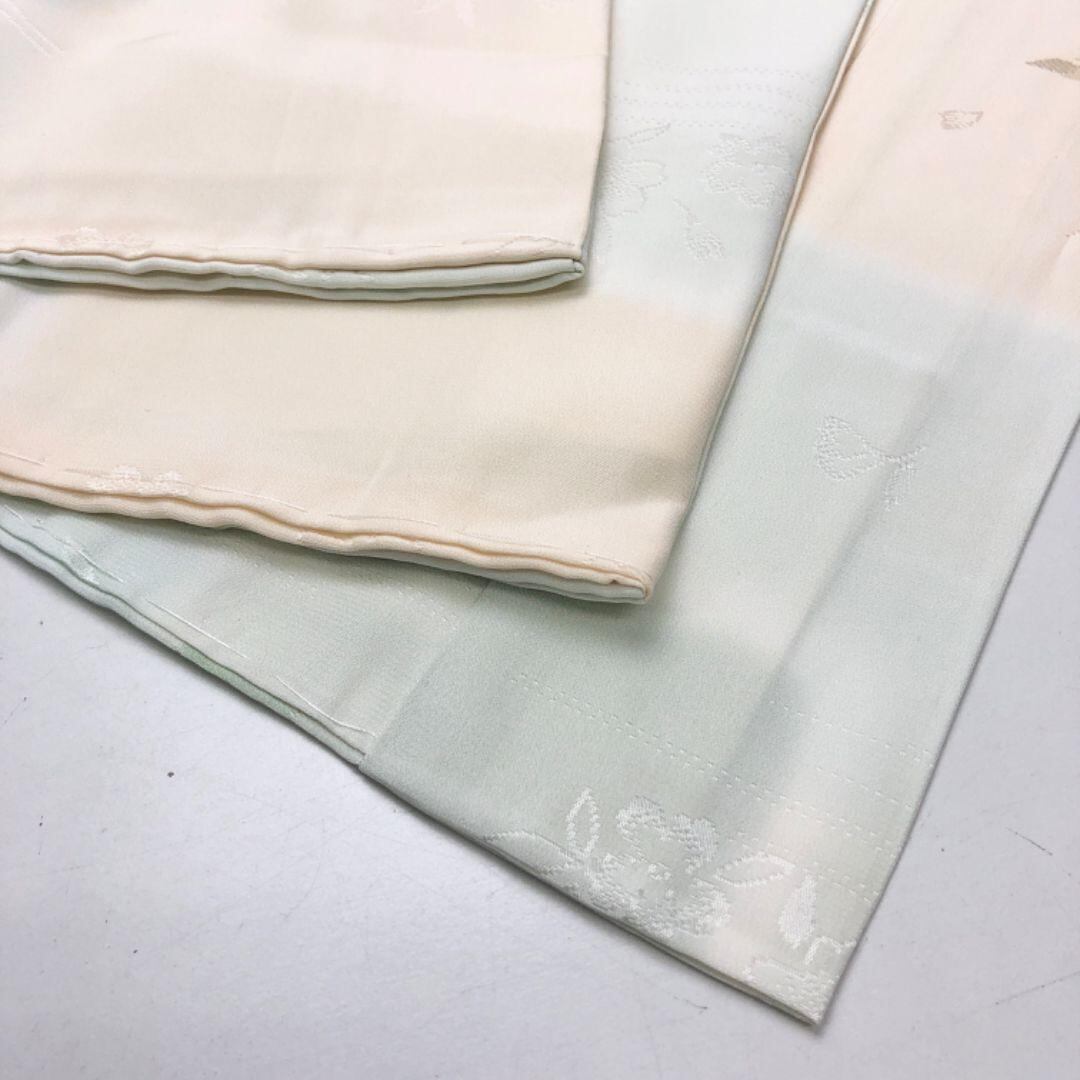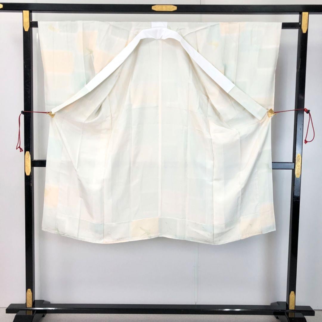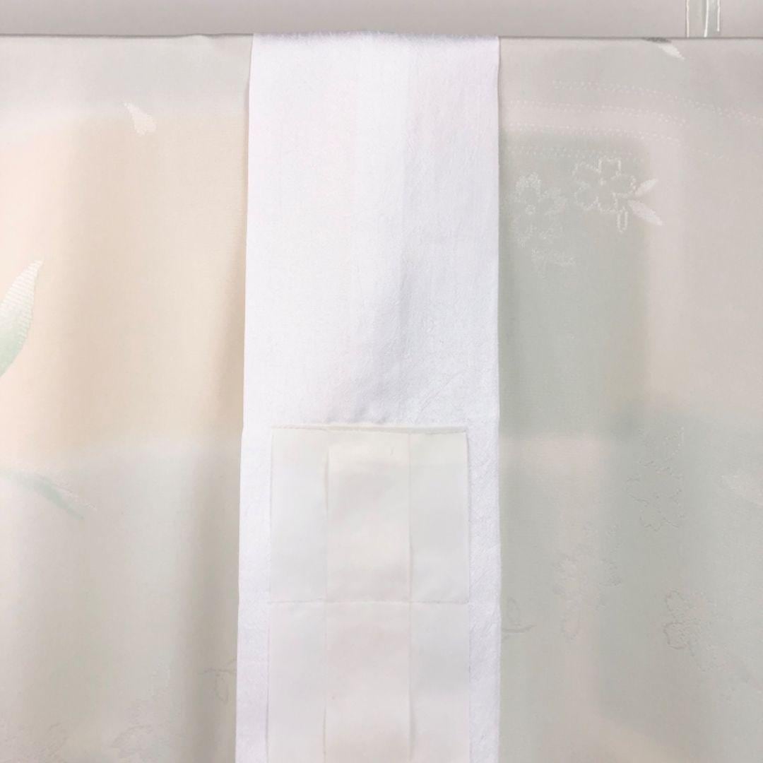 卯の花色ベースのお色味に鶴、花模様の柄裄がデザインされた素敵なお品でございます。