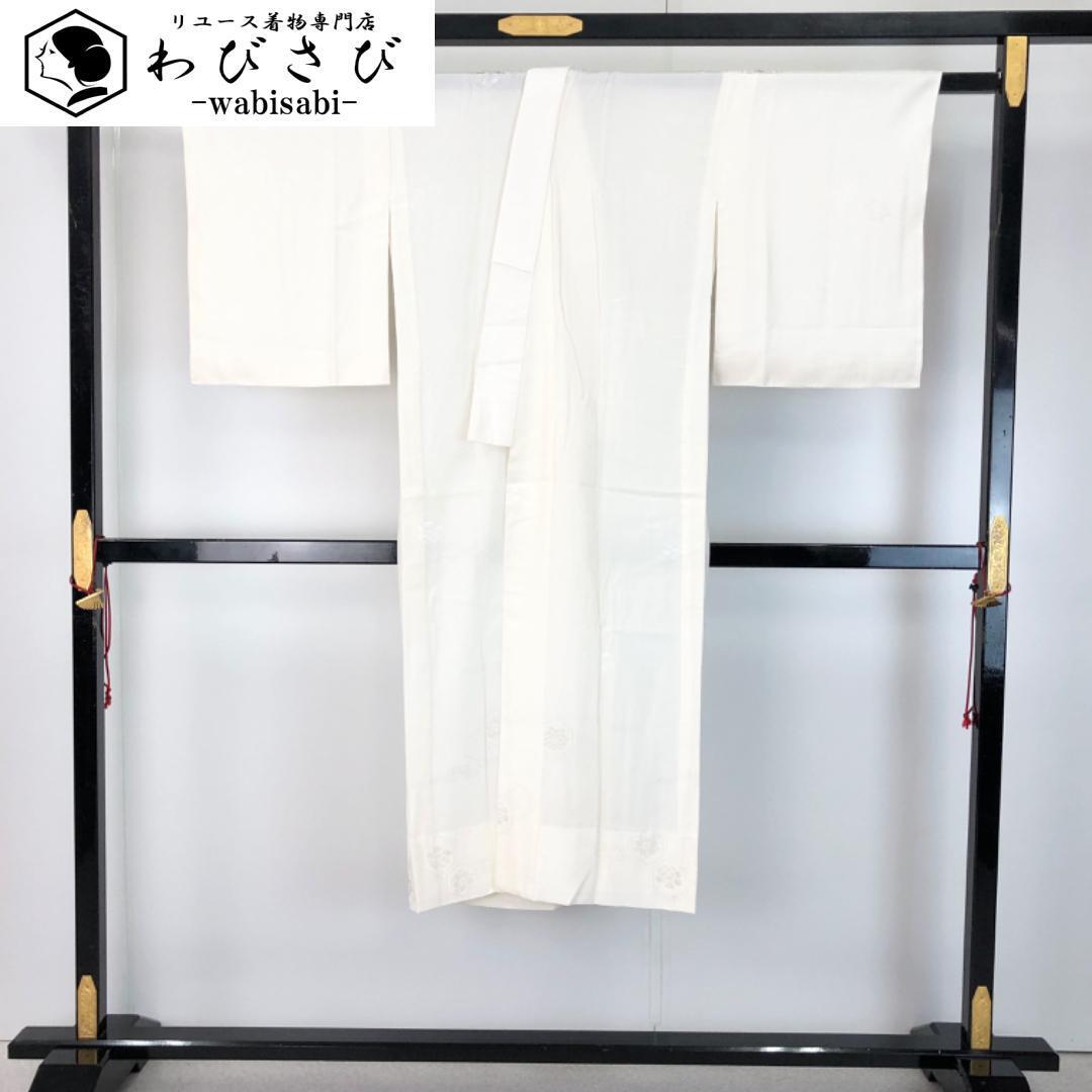 乳白色のお色味に亀甲に花模様の柄裄がデザインされた素敵なお品でございます。
