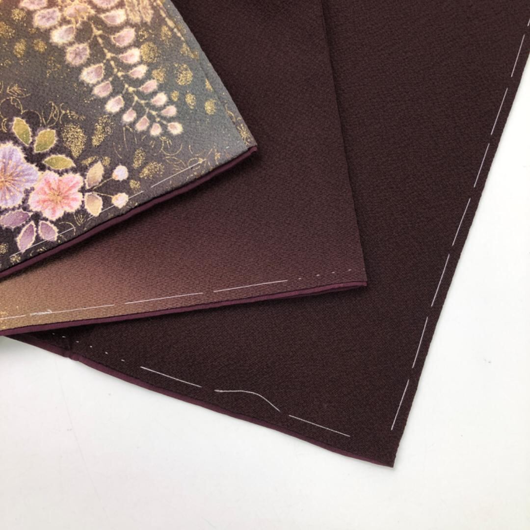 溜色のお色味に美しい辻が花絞りがデザインされた雰囲気の良い素敵なお品でございます。
