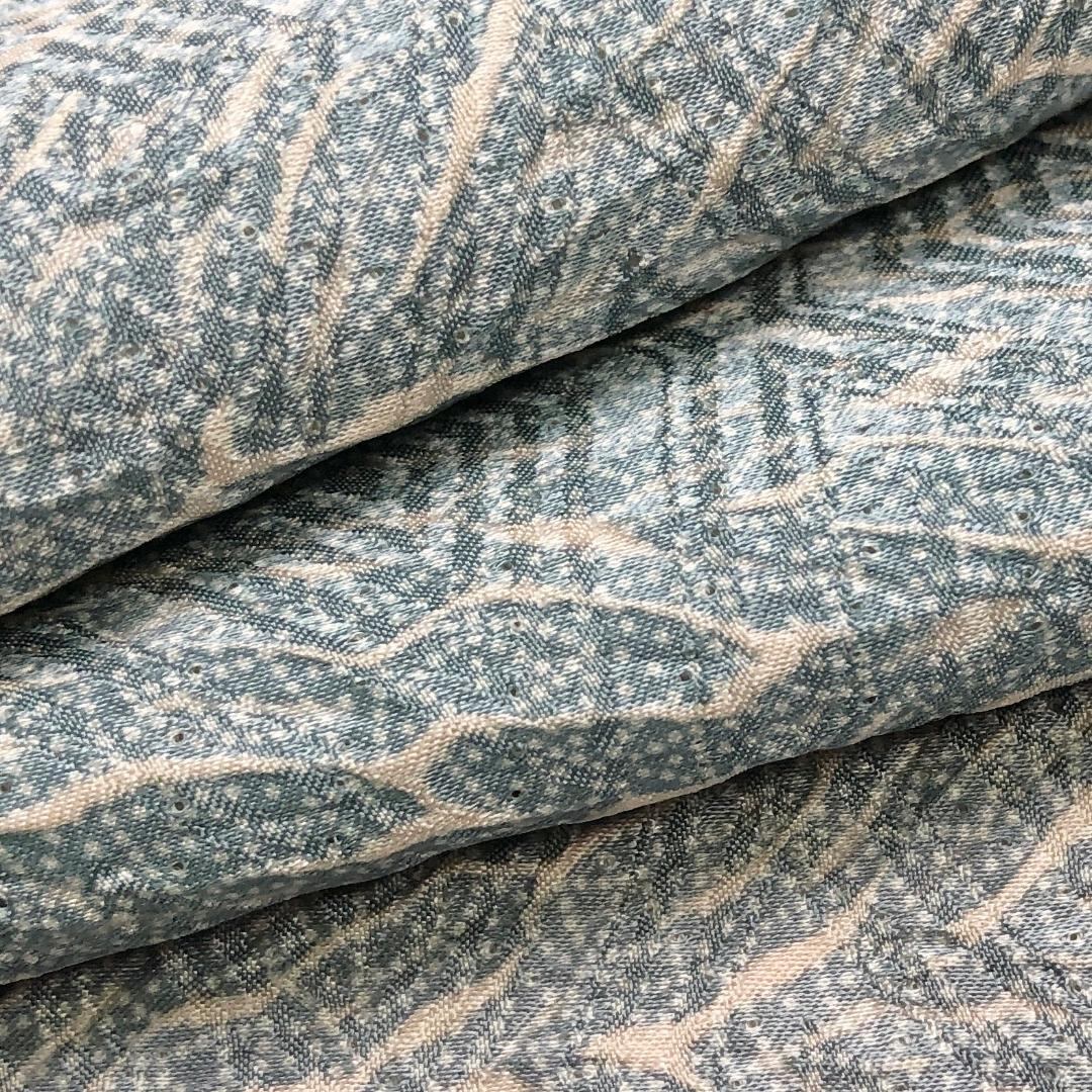 薄灰藍色の上品のお色味に杢目絞りの雰囲気の良い素敵な柄裄がデザインされたお品でございます。