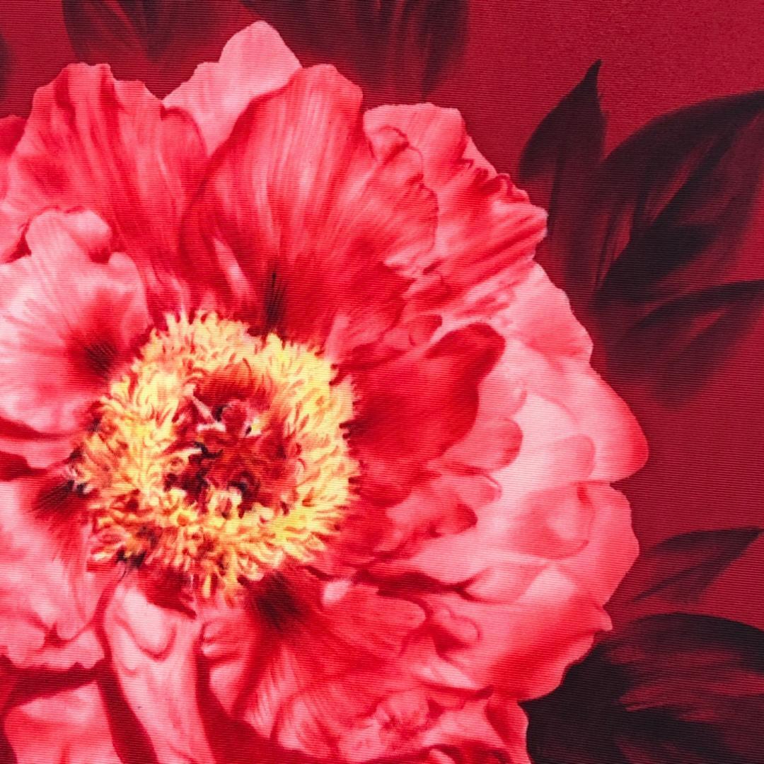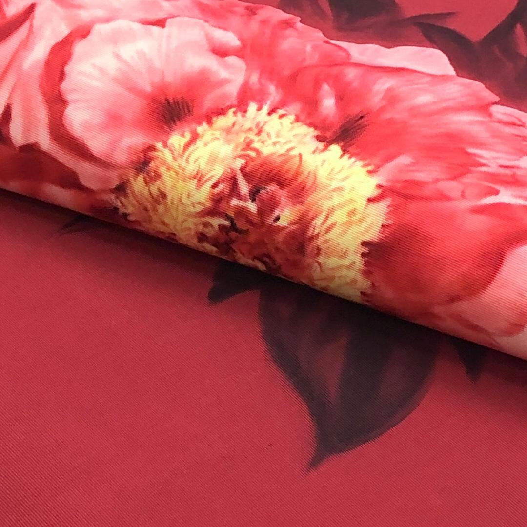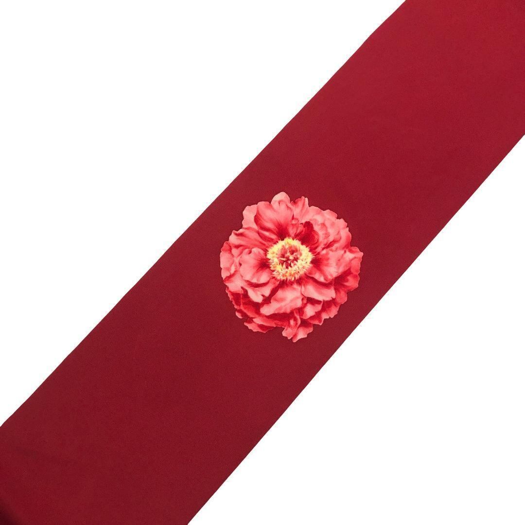 紅絹色のお色味の塩瀬地に手描きの花模様がデザインされた素敵な柄裄のお品でございます。