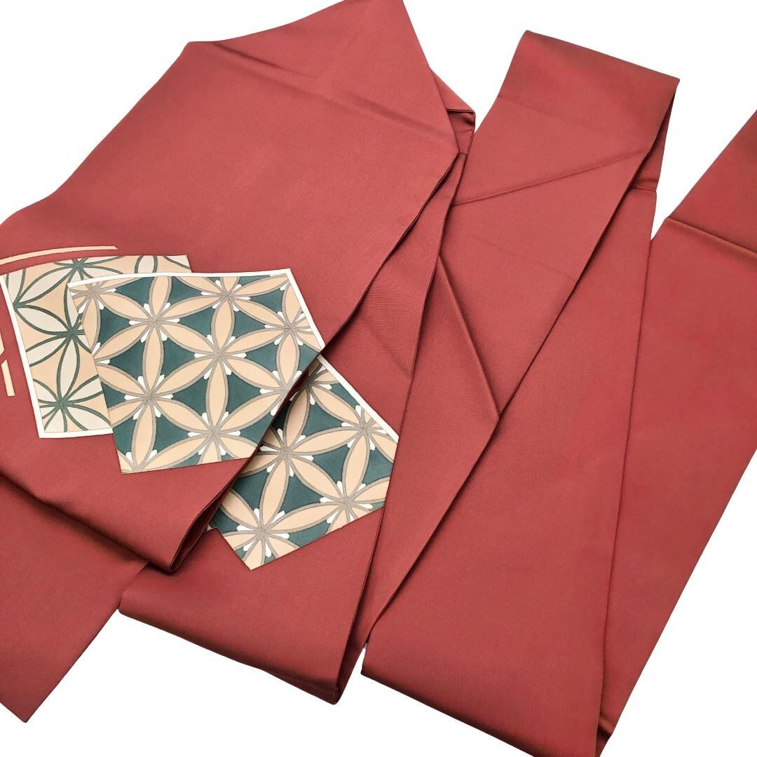 名古屋帯 塩瀬 菱形 花七宝 柘榴色 O-5629 着物 きもの kimono 和服 和装 中古 リサイクル着物 【送料無料】