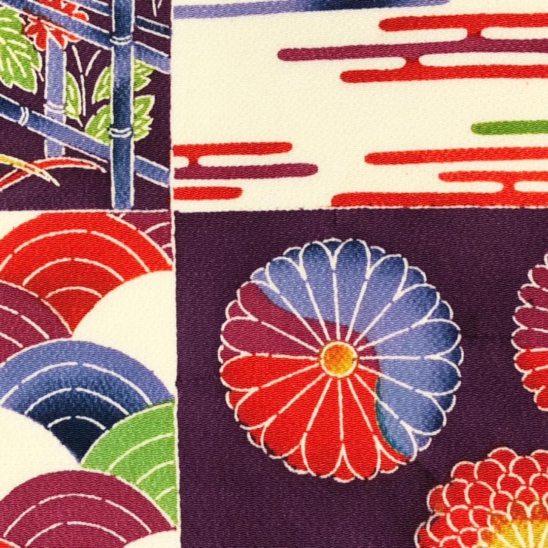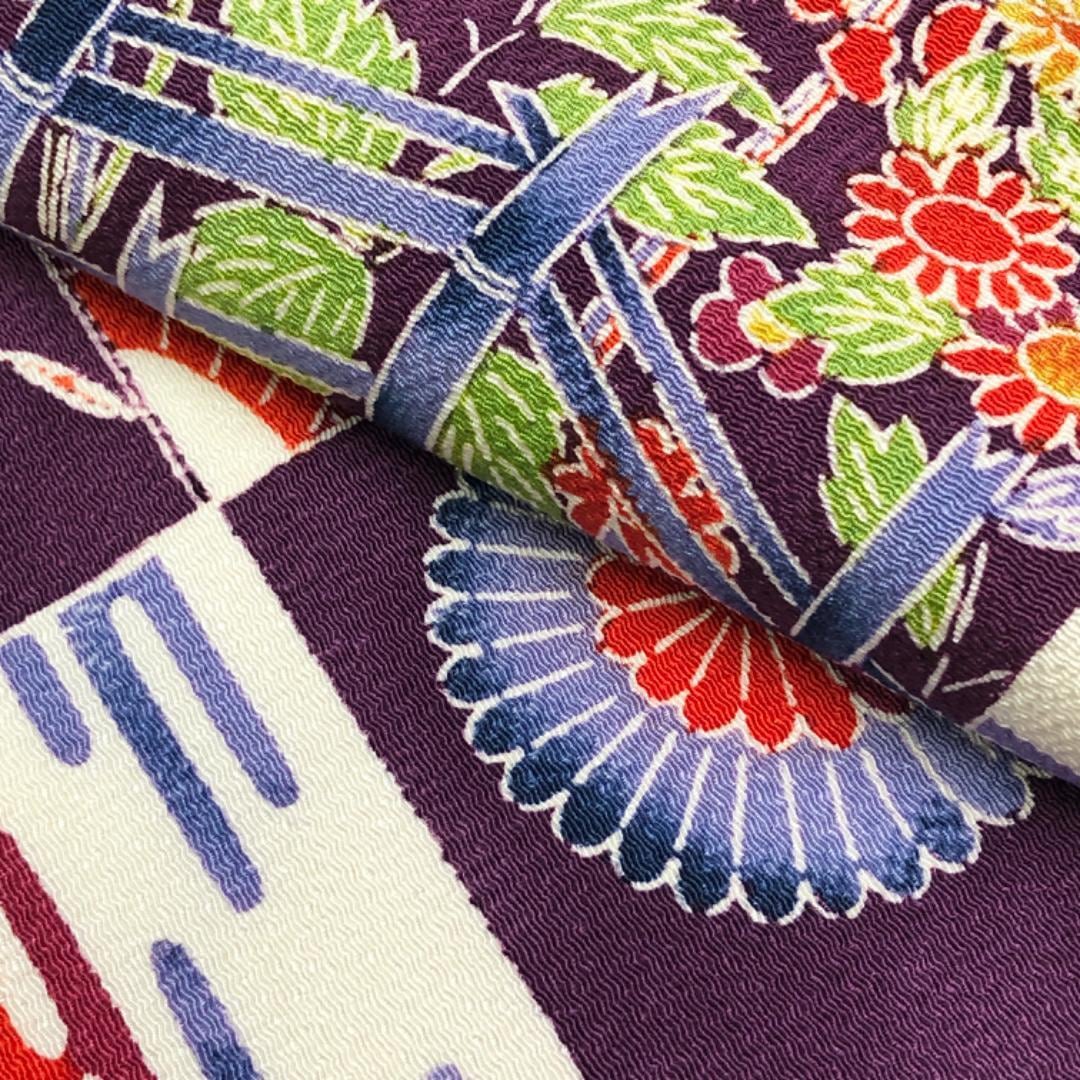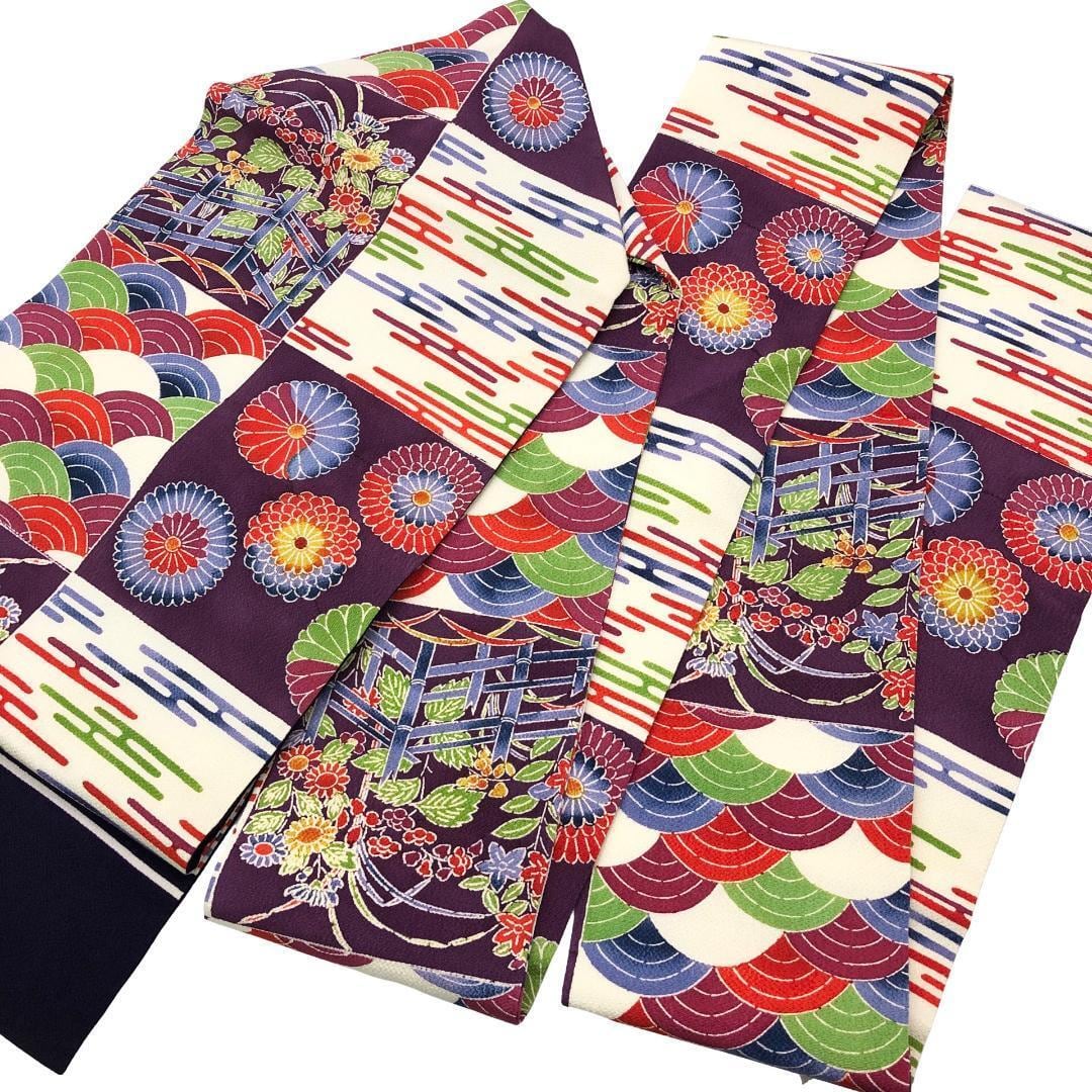 総柄型染、色鮮やかな花模様、青海波、エ霞などの柄裄がデザインされた雰囲気の良い素敵なお品でございます。