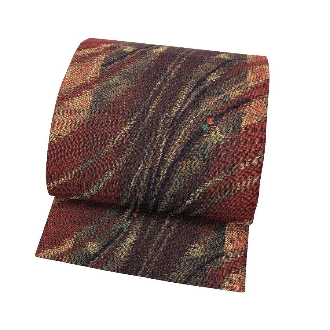 袋帯 本場筑前博多織 白石 証紙付 さつま色泥 流彩 深緋色 O-5635 着物 きもの kimono 和服 和装 中古 リサイクル着物 【送料無料】