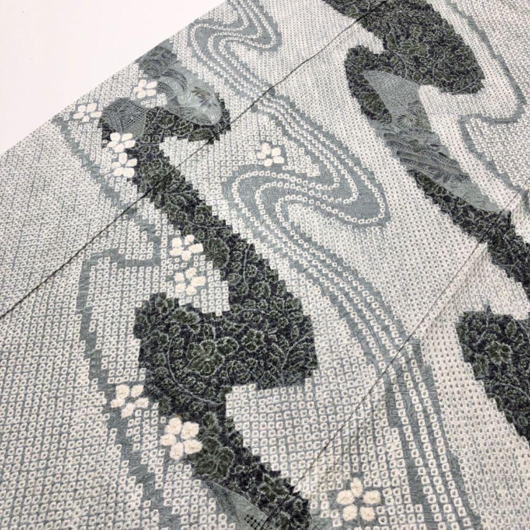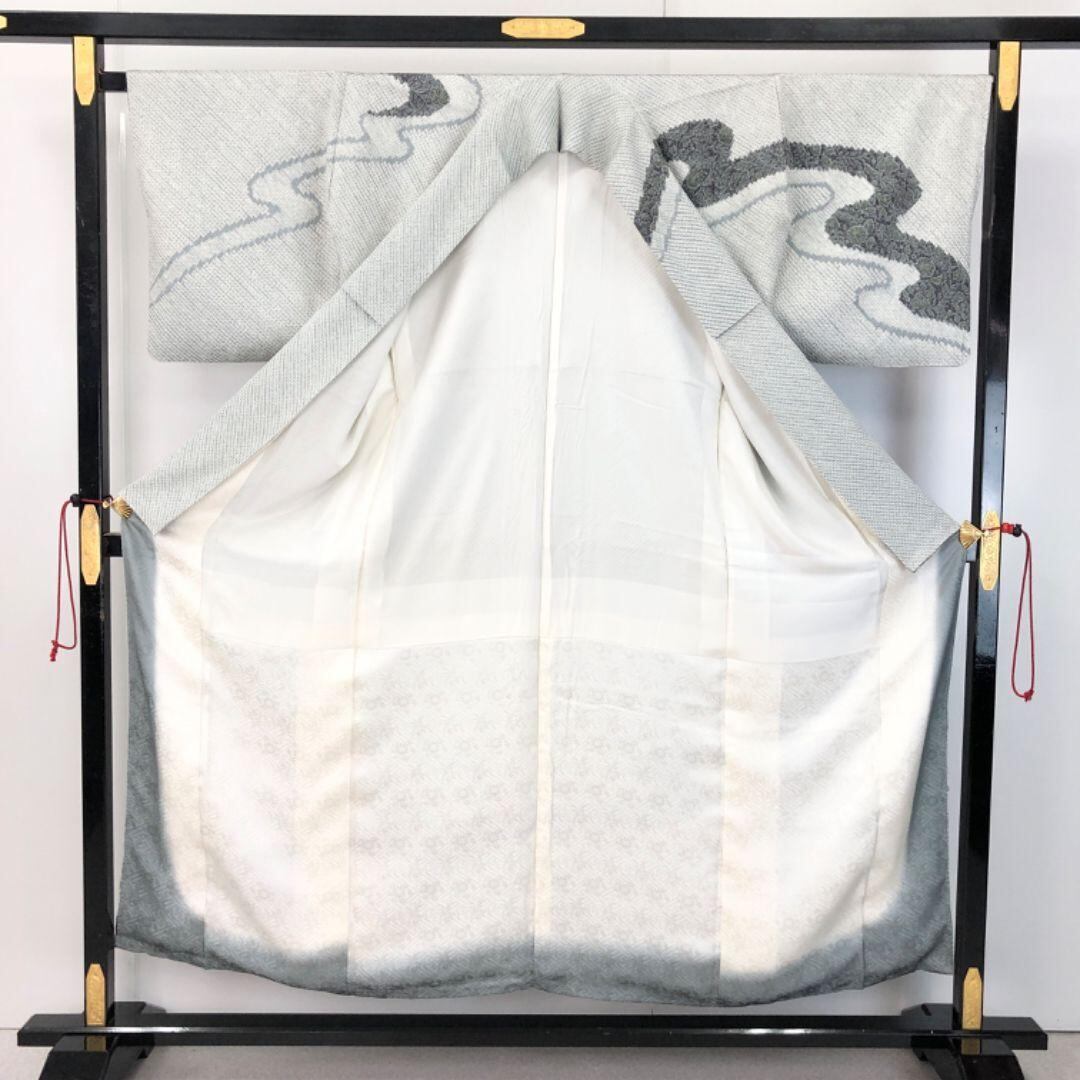 訪問着 総絞り 流水模様 中国刺繍 花模様 沈香茶色 ガード加工 K-5427 着物 きもの kimono 和服 和装 中古 リサイクル着物 【送料無料】